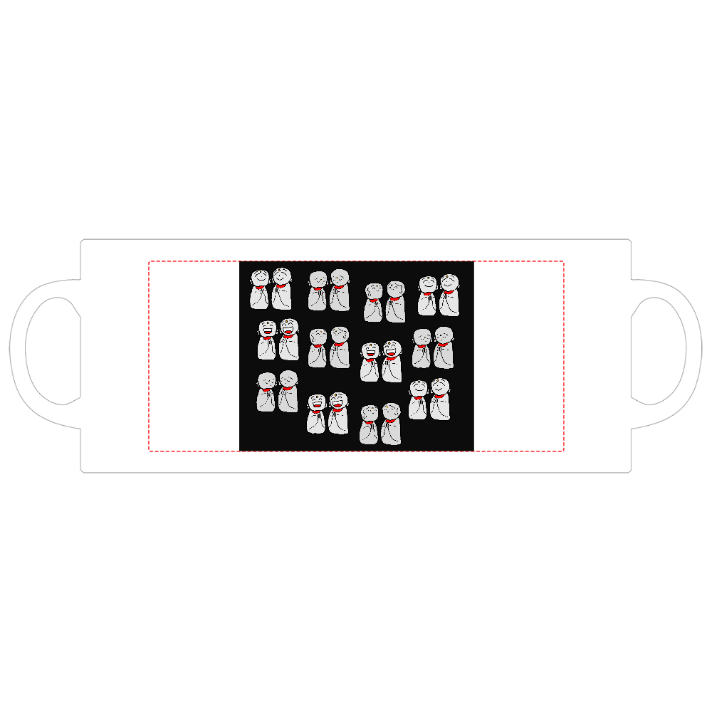 転写紙にインクをプリントし高温の熱をかけることで、インクを気化させマグカップに浸透させる加工方法です。マグカップに直接浸透させることで、表面には印刷した違和感(凸凹)が全く残りません。