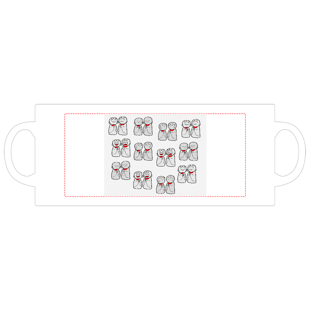 転写紙にインクをプリントし高温の熱をかけることで、インクを気化させマグカップに浸透させる加工方法です。マグカップに直接浸透させることで、表面には印刷した違和感(凸凹)が全く残りません。