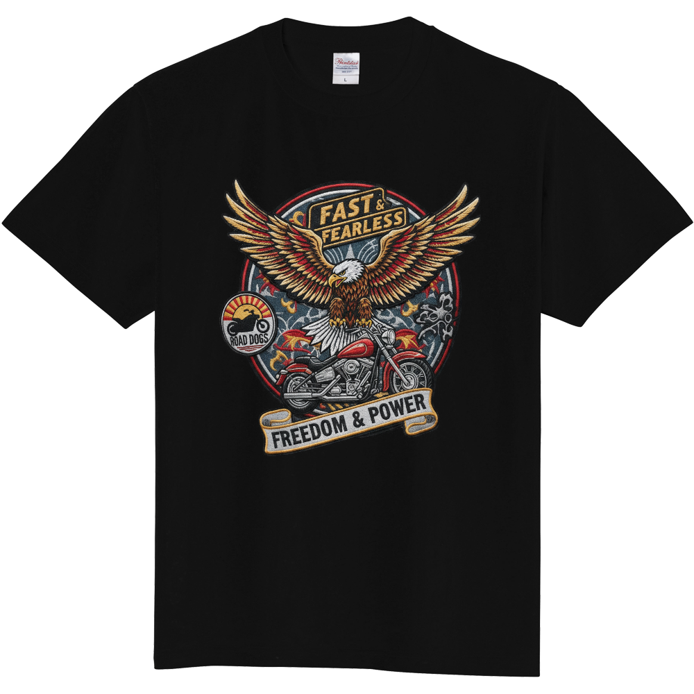 「Fast & Fearless」 のメッセージを胸に、どこまでも続く道を駆け抜けましょう。デニムやレザーと合わせて、アメリカンカジュアルなコーディネートを楽しむのがおすすめです。