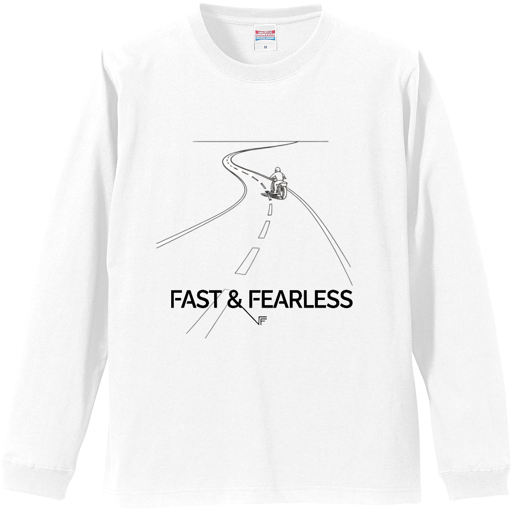 このロンTは、袖にあしらわれた**「Fast & Fearless」**のシンプルなロゴと、背中に描かれた曲がりくねった道のグラフィックが特徴です。目の前の道を力強く駆けるライダーの姿は、目標に向かってひたむきに進むあなたの姿勢を映し出します。