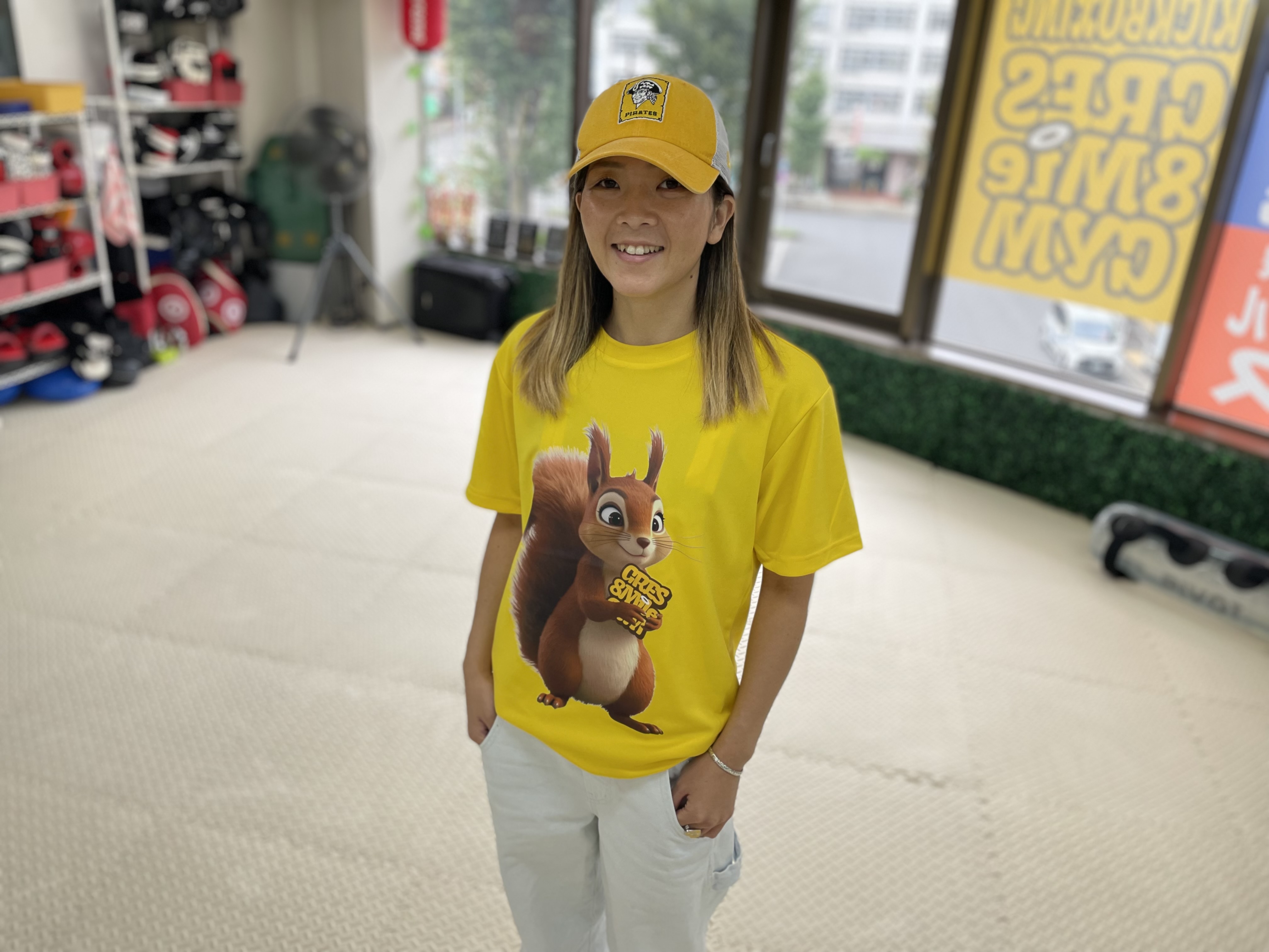 自動生成AIで生まれたオリジナルのリスがデザインされています。愛らしい姿がポイントで、可愛さあふれるデザインは、練習中のジムの雰囲気まで明るくしてくれます。