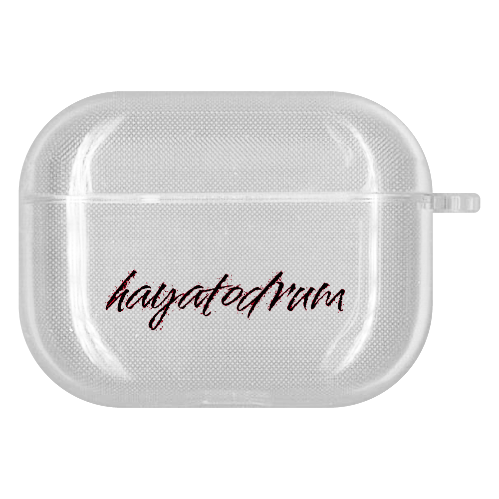 hayatodrum 2026年版のロゴが刻まれたAirPods Proのクリアケースです。