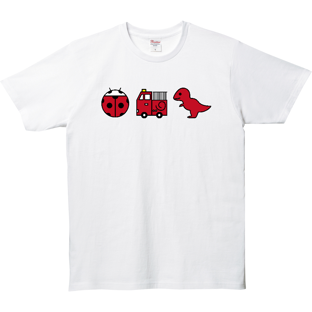 【赤いもの】5.0オンスベーシックTシャツキッズ|テントウムシ・消防車・ティラノサウルス