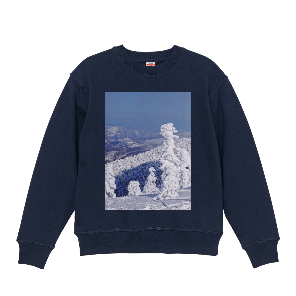 凍てつく風が創り出す、息をのむほど美しい「樹氷(スノーモンスター)」。このスウェットは、そんな神秘的な冬の絶景を胸元に宿し、あなたの日常に非日常の感動を届けます。雄大な雪山が織りなすアートを身に纏い、この冬の主役になりませんか?