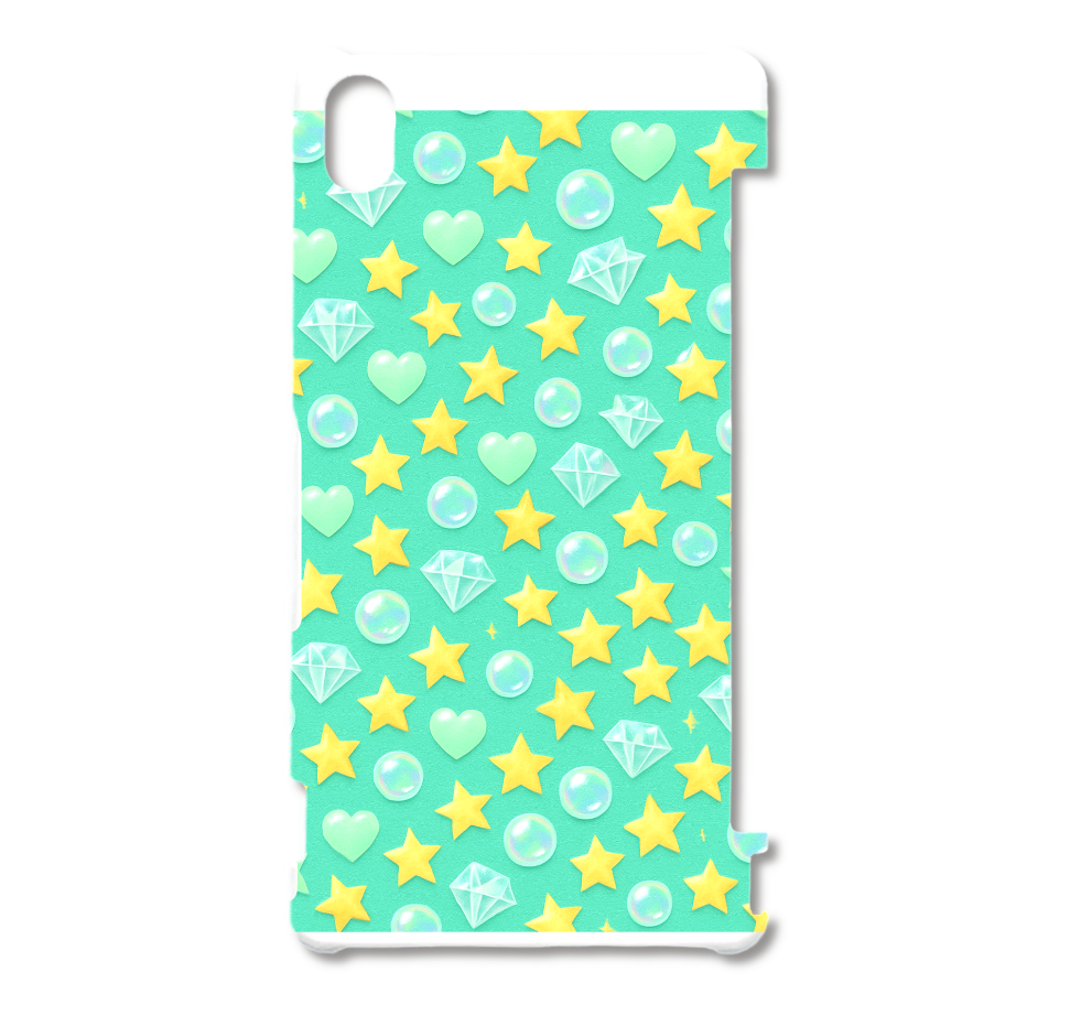 きらめくシルバーダイヤ、可愛らしいハート、輝く星、そして幻想的なシャボン玉がエメラルドグリーンの背景に散りばめられた華やかなデザイン。