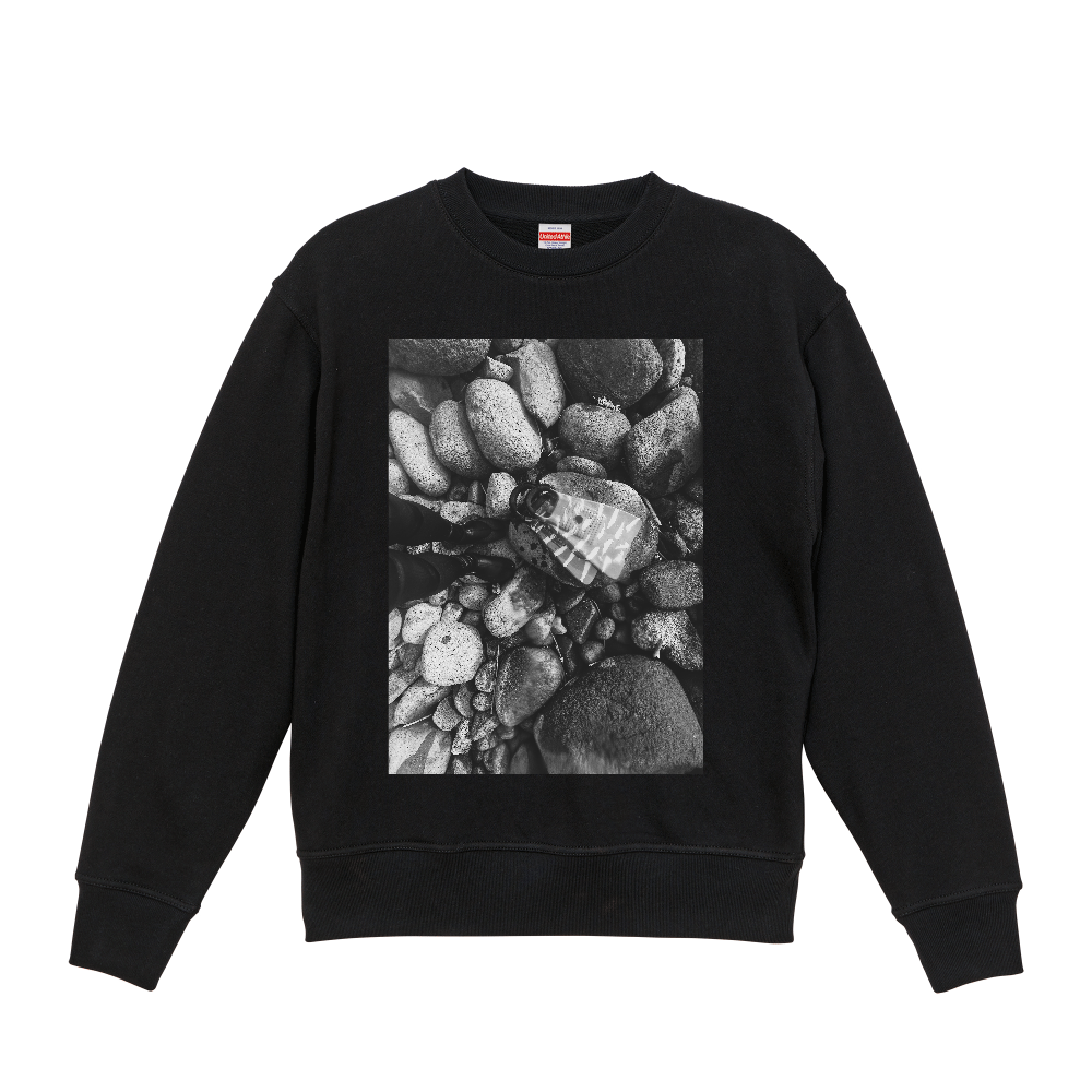足元に広がる小石たちのささやき、そしてその中にそっと佇む不思議な存在。このスウェットは、日常の中に隠されたモノクロームの美学を捉え、あなたのスタイルに深みと知的なムードを添えます。ただのスウェットではない、アートを身に纏う喜びを。