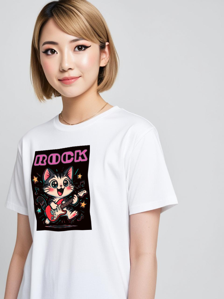 このTシャツは、そんなROCKYくんの熱いパフォーマンスをそのまま閉じ込めた、ポップでキュート、だけどちょっぴりワイルドな一枚。かわいらしさとロック魂が見事に融合した、ユニークなデザインが特徴です。