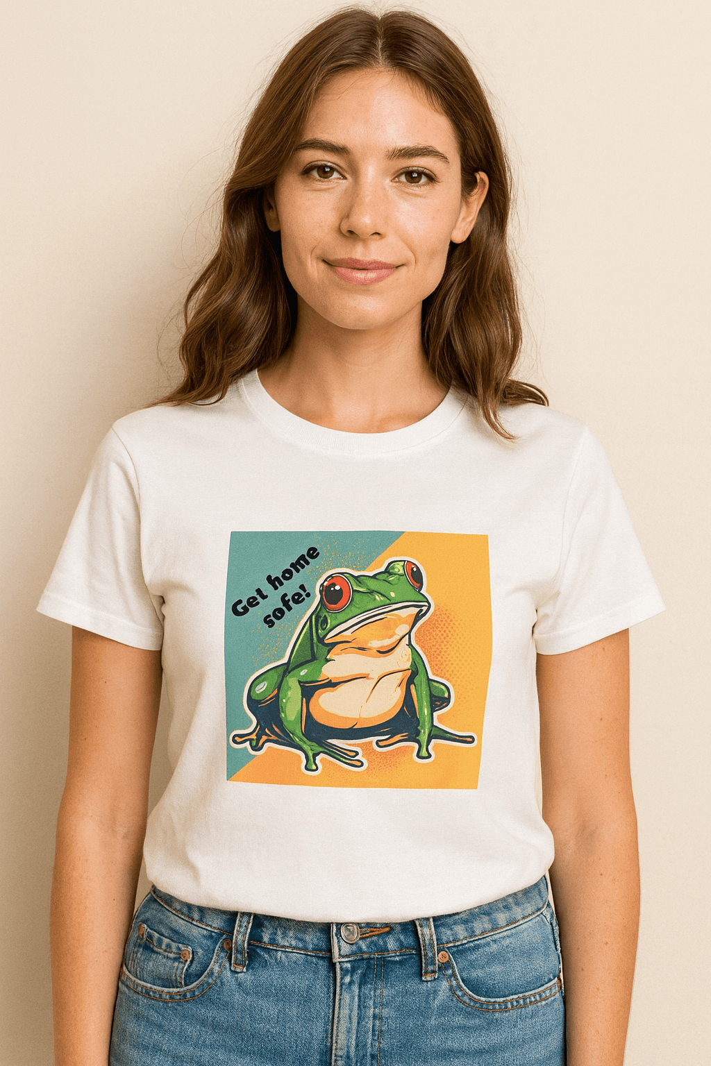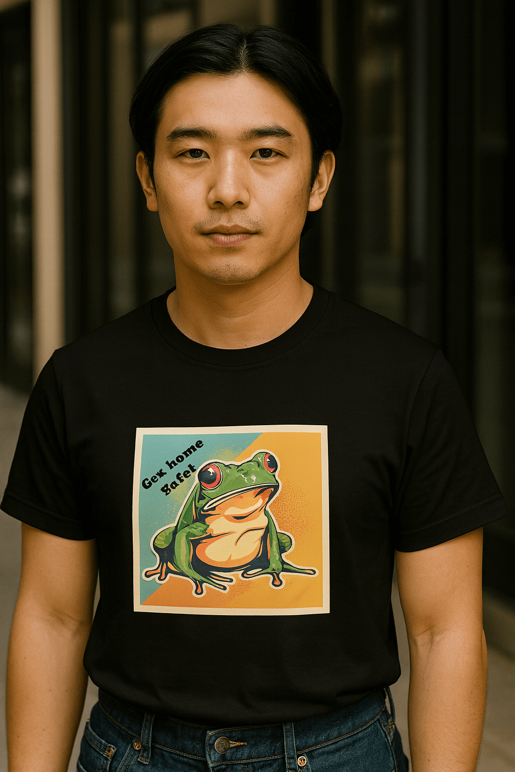カエルのモチーフに「無事に帰る」という願いを込めたTシャツデザインをお届けします。