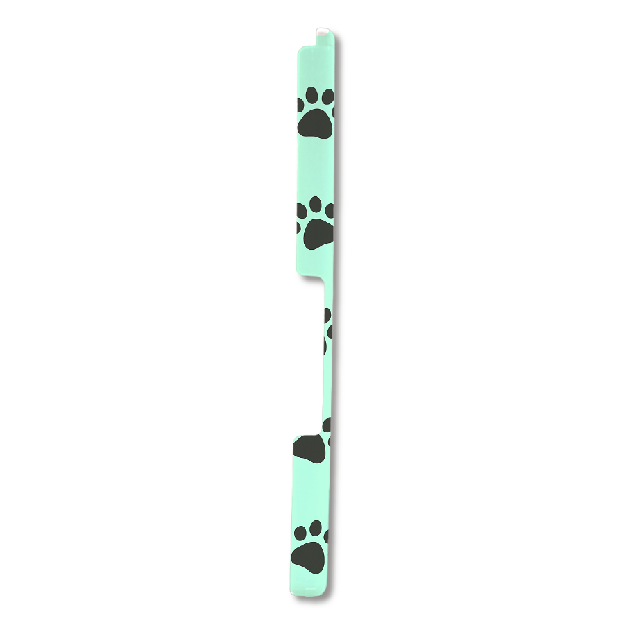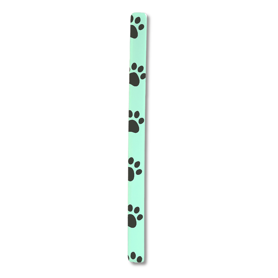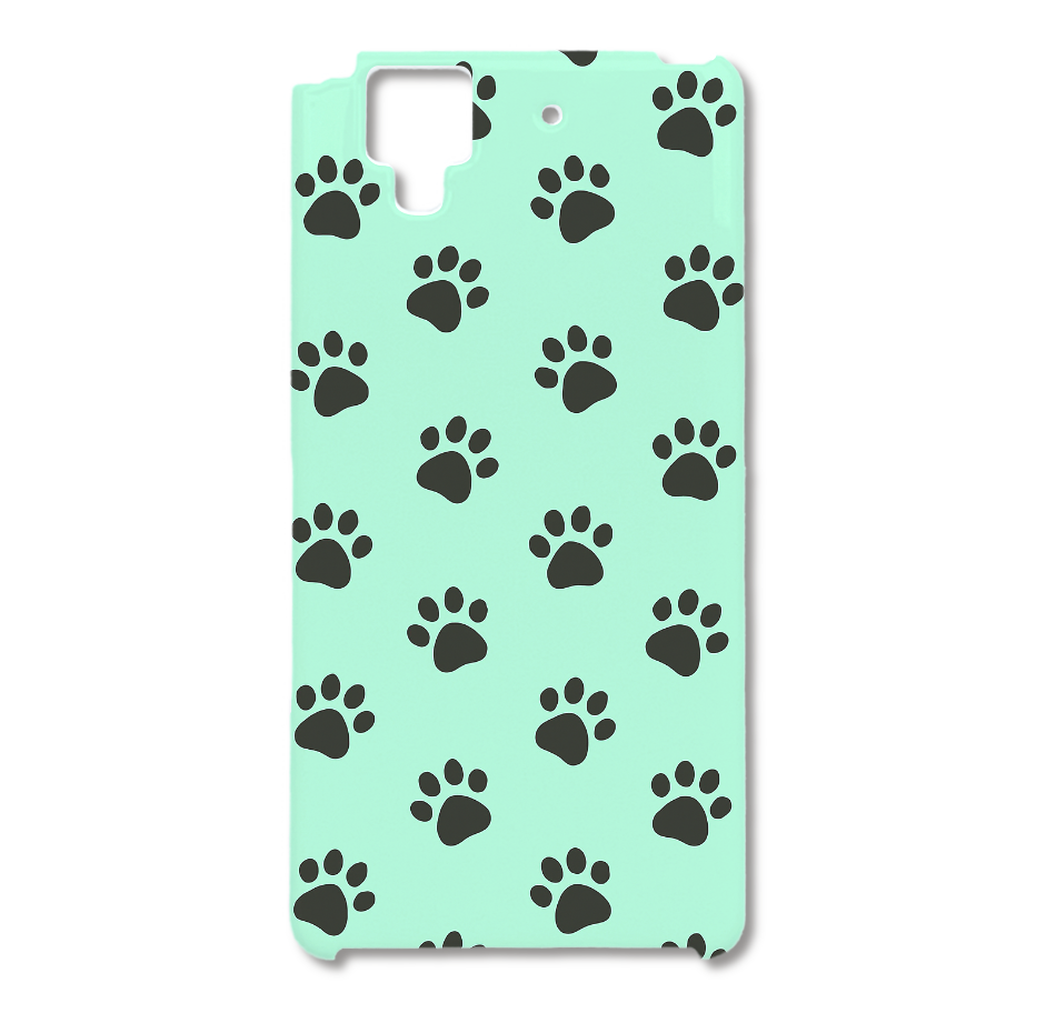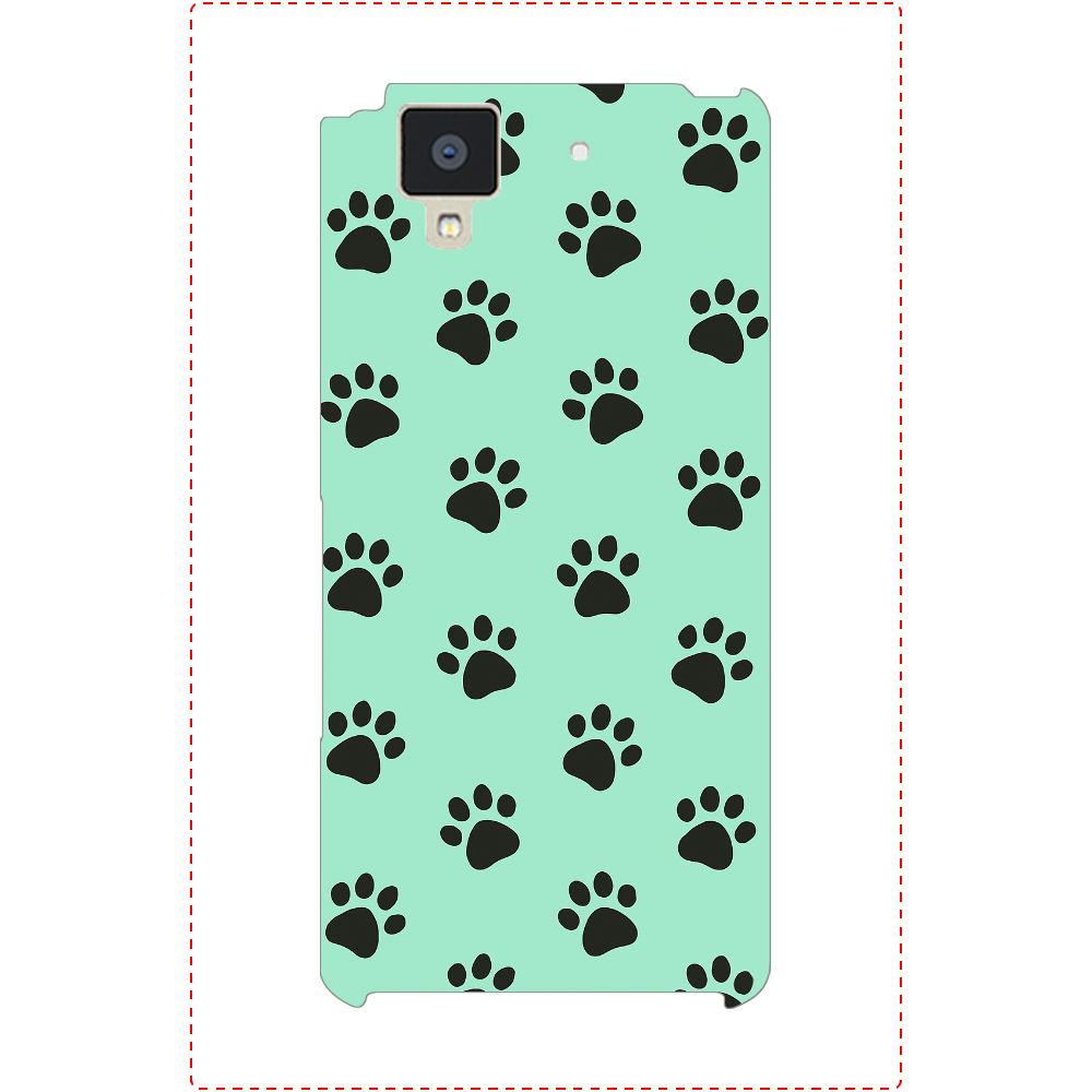 エメラルドグリーンの背景に黒い肉球模様を散りばめた、キュートで癒し感たっぷりのスマホケース。