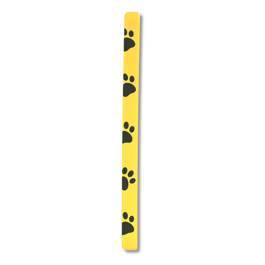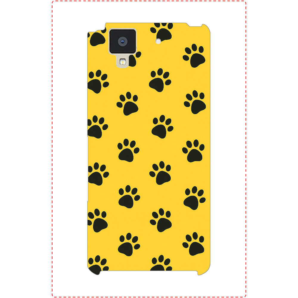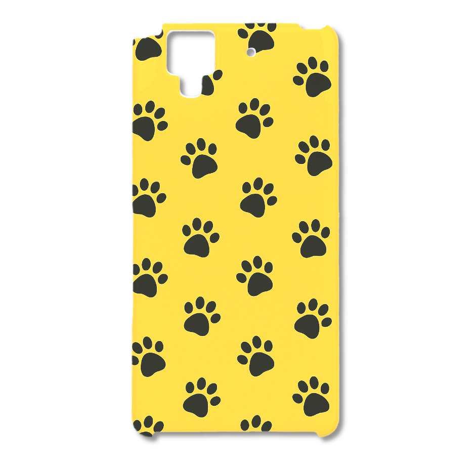 イエローの背景に黒い肉球模様を散りばめた、キュートで癒し感たっぷりのスマホケース。