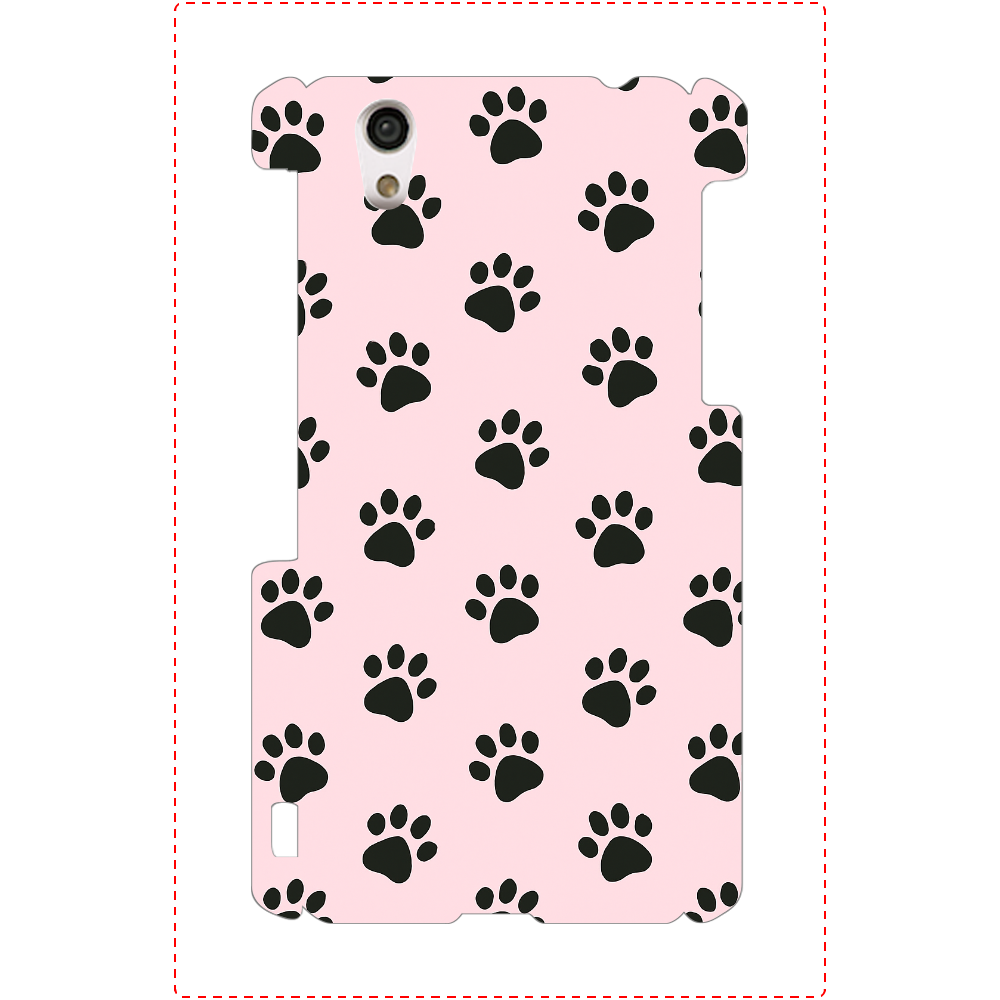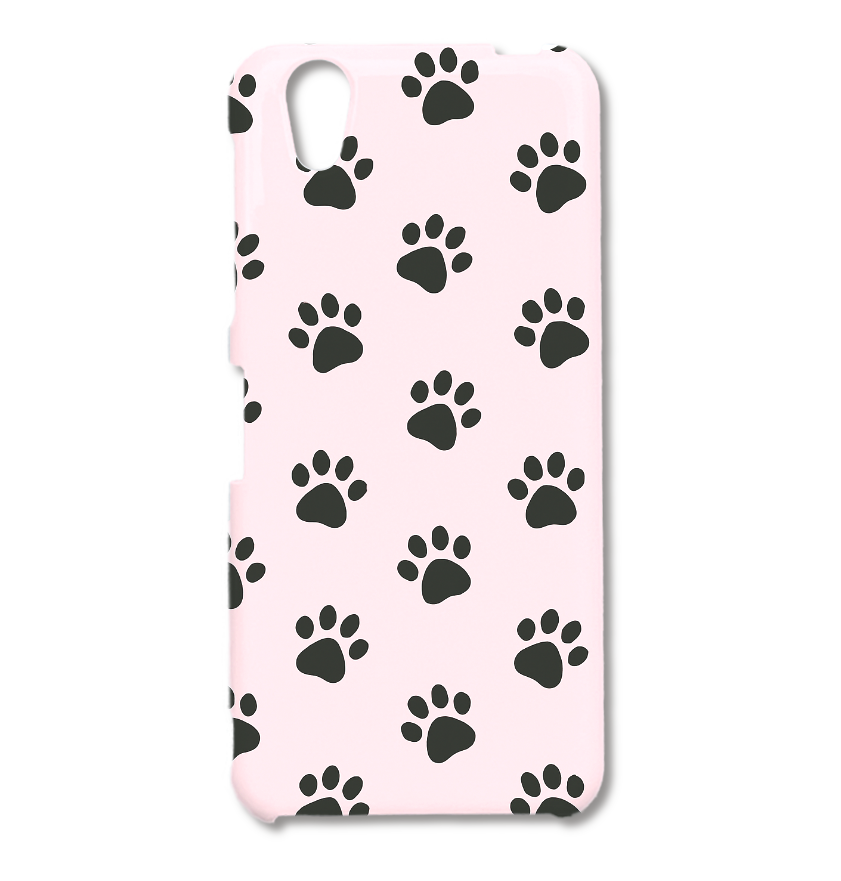 淡いピンクの背景に黒い肉球模様を散りばめた、キュートで癒し感たっぷりのスマホケース。
