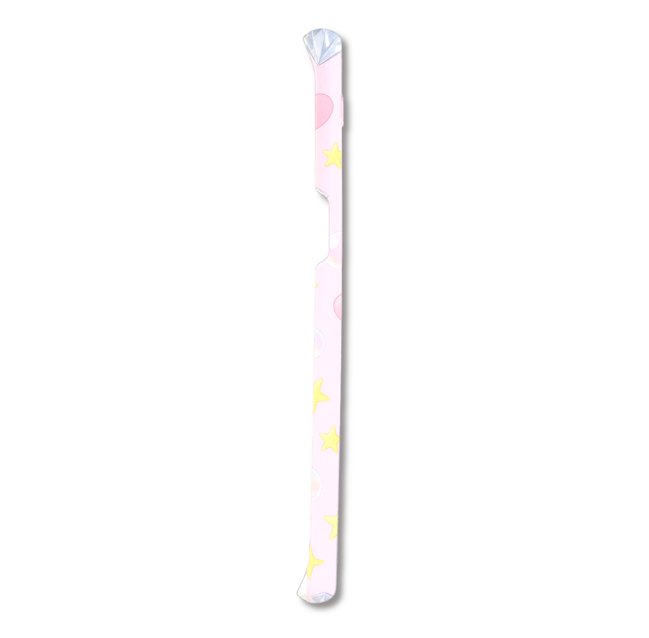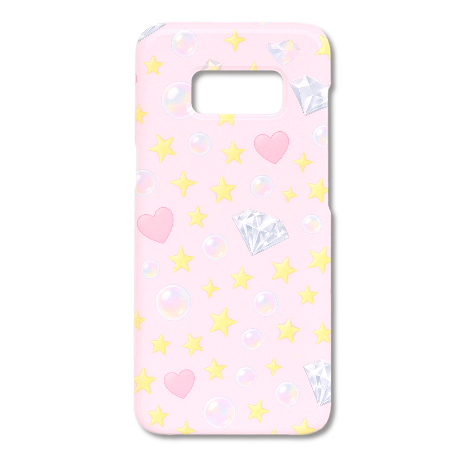 パステル背景に、ダイヤ・ハート・星・シャボン玉を散りばめた幻想的なデザイン。キラキラと輝くパターンは持つ人の気分を明るく彩ります。