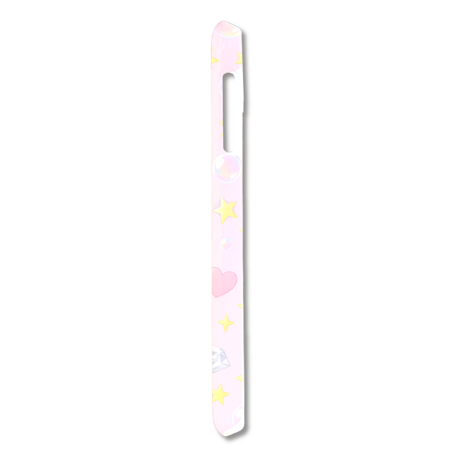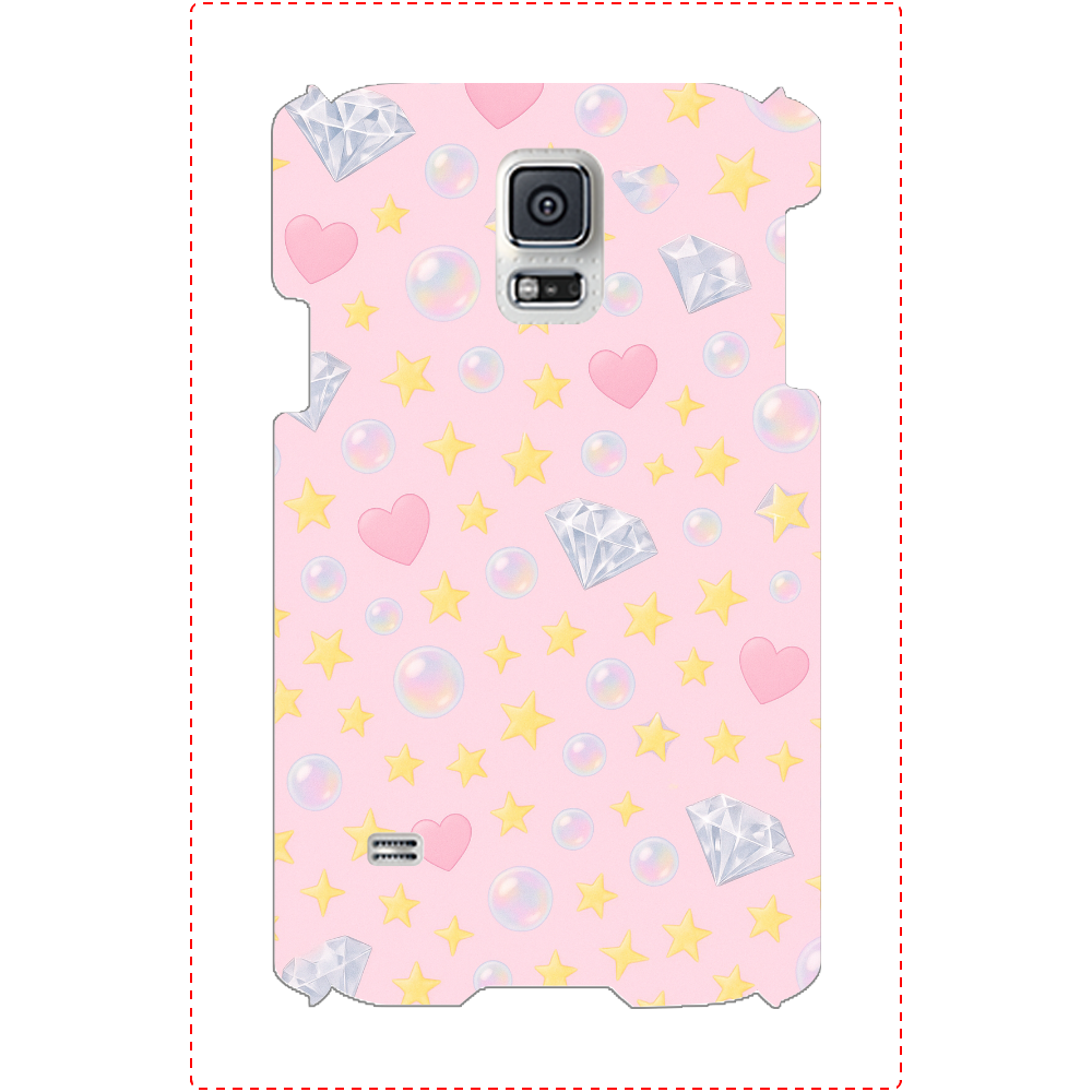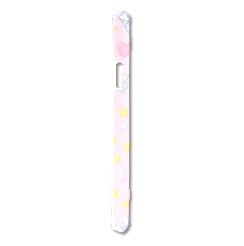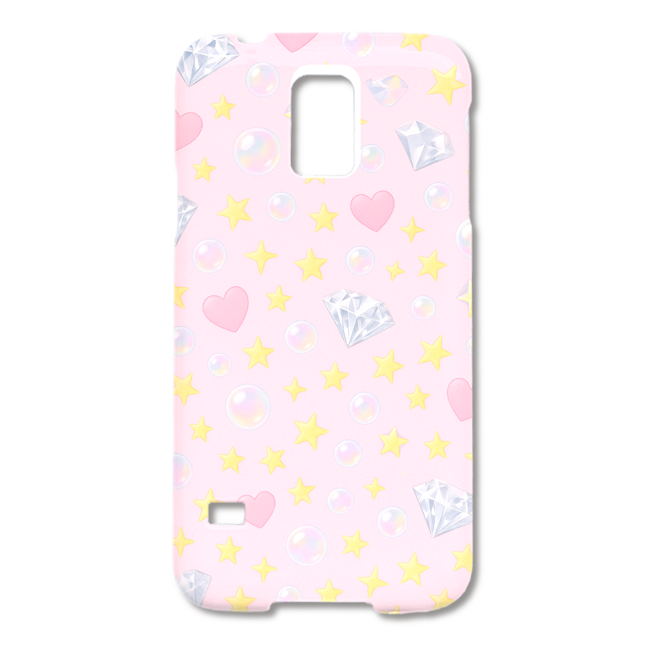 パステル背景に、ダイヤ・ハート・星・シャボン玉を散りばめた幻想的なデザイン。キラキラと輝くパターンは持つ人の気分を明るく彩ります。