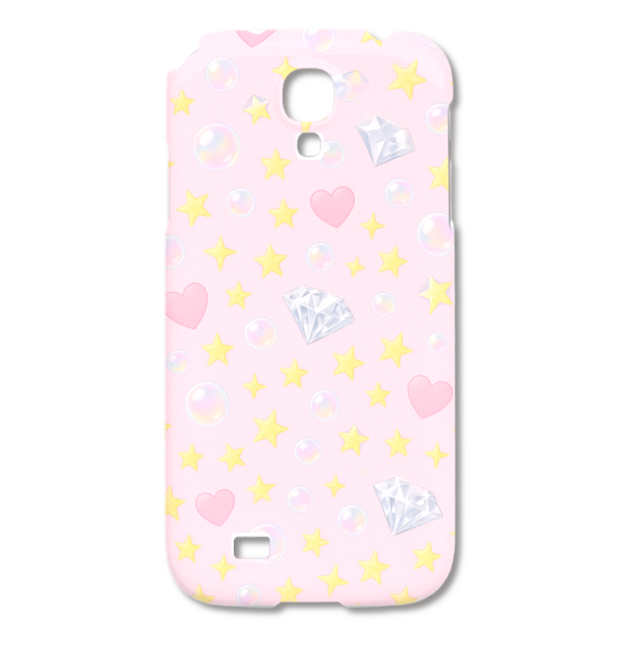 パステル背景に、ダイヤ・ハート・星・シャボン玉を散りばめた幻想的なデザイン。キラキラと輝くパターンは持つ人の気分を明るく彩ります。