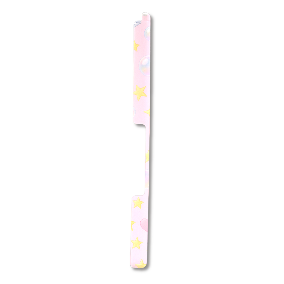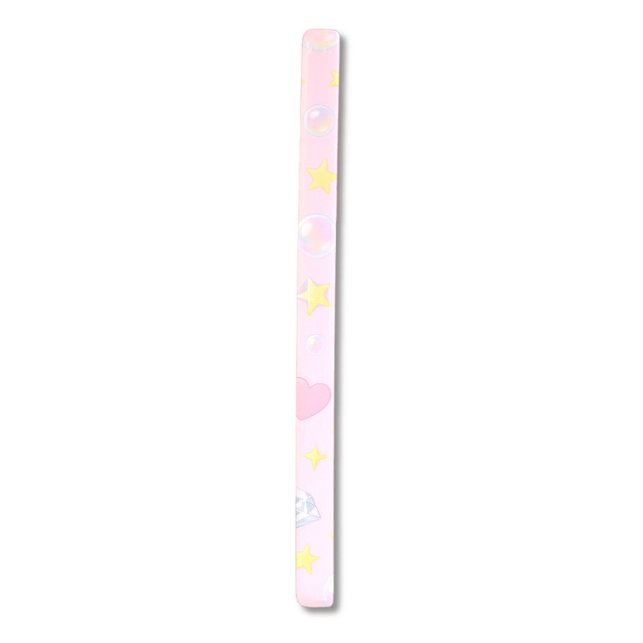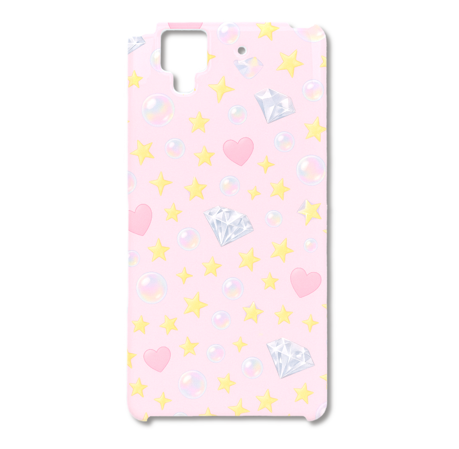 パステル背景に、ダイヤ・ハート・星・シャボン玉を散りばめた幻想的なデザイン。キラキラと輝くパターンは持つ人の気分を明るく彩ります。