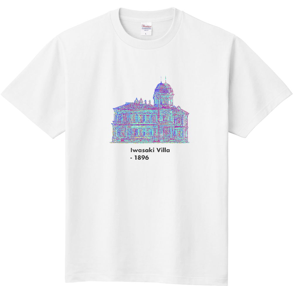 東京・上野に佇む西洋建築の傑作「旧岩崎邸洋館(1896年竣工)」を、繊細な線画で描き起こし、モダンなカラーリングで再構築しました。