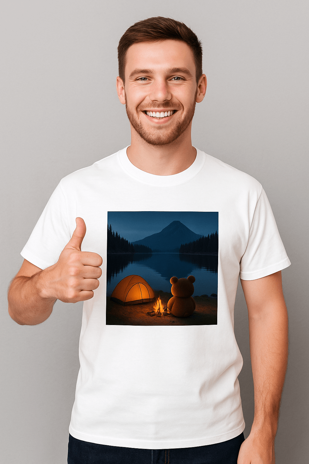 Camping is unforgettable — with family, solo, or with friends. Those perfect moments by the fire or lantern are now captured in this T-shirt.