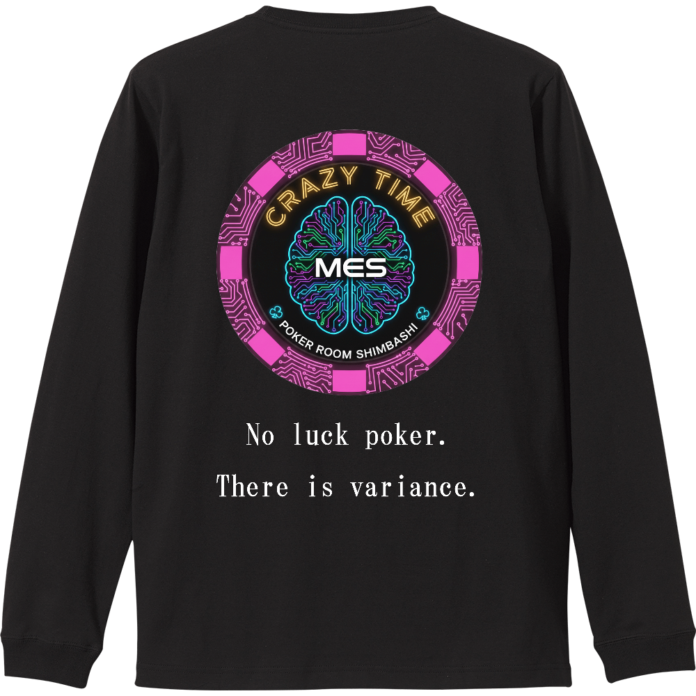 背面に大きくプリントされた 「CRAZY TIME POKER ROOM SHIMBASHI」 のロゴは、