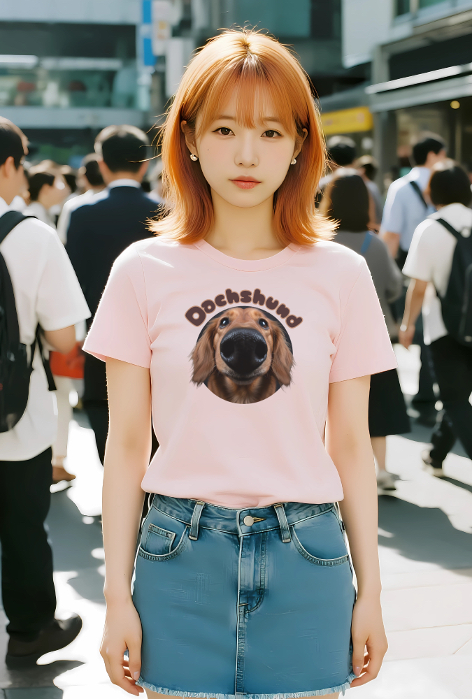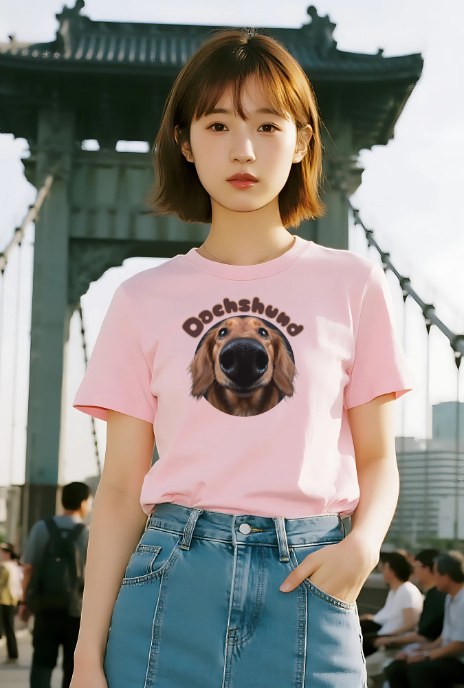 犬好きさんの心をわしづかみにする、インパクト満点の「魚眼レンズフォトの鼻デカ・ダックスフント」デザインが登場! まるで目の前に愛犬が迫ってきたかのようなリアル感とユーモアたっぷりのイラストは、カジュアルスタイルにもストリートファッションにも相性抜群。普段使いはもちろん、愛犬家へのギフトやペットイベント、ドッグランでのお揃いコーデにもおすすめです。