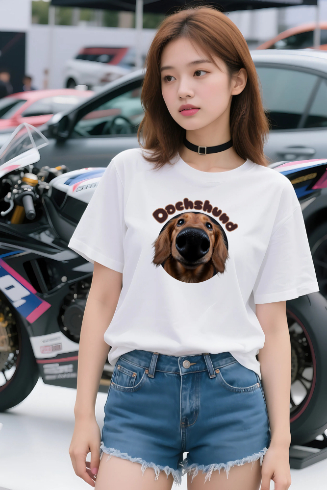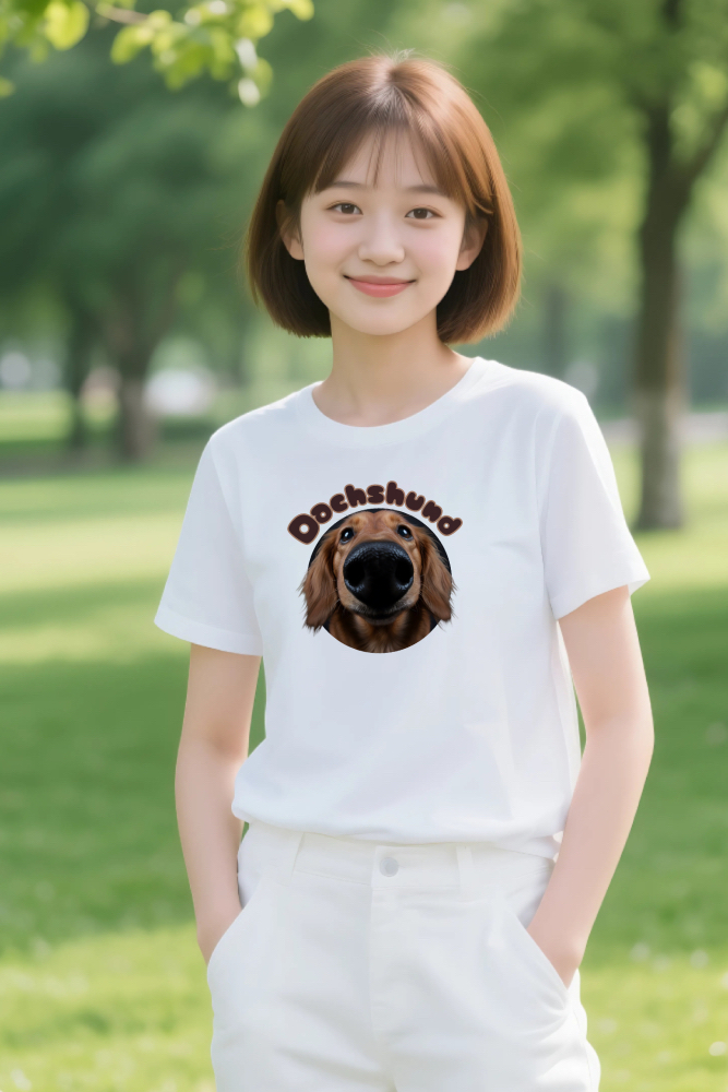 【ダックスフントTシャツ】存在感抜群!魚眼レンズフォトの鼻デカわんこデザイン|犬好き・ペット好き必見