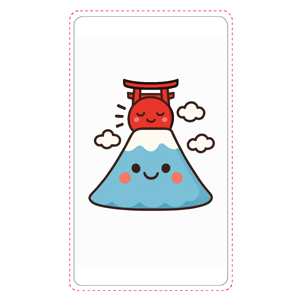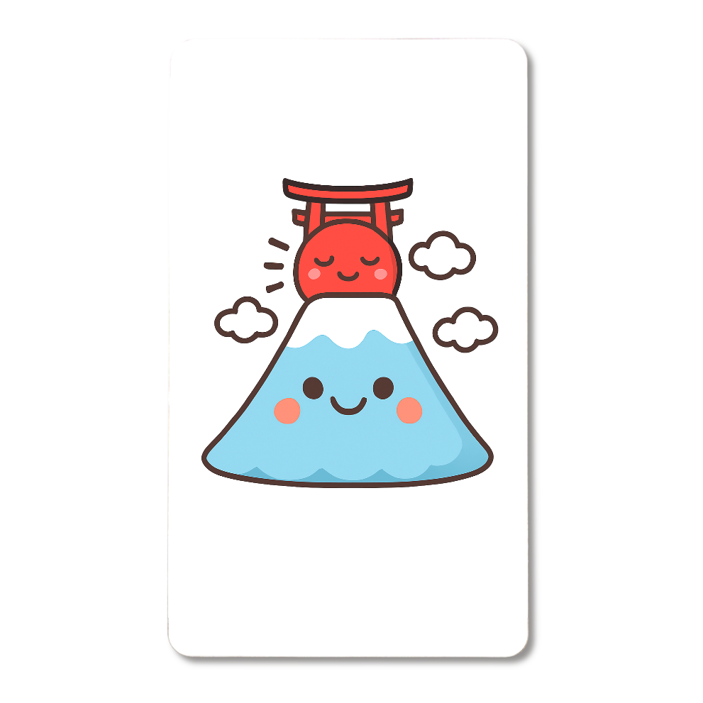 This illustration features Japan’s iconic Mount Fuji as a cute, personified character. The blue mountain wears a snowy cap and smiles warmly, bringing joy to anyone who sees it.