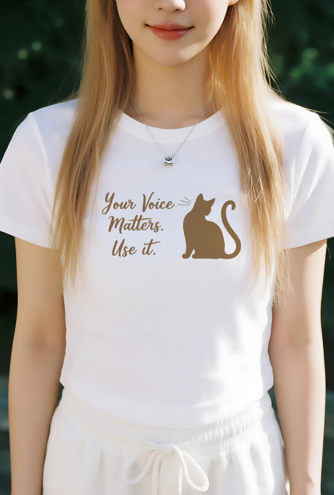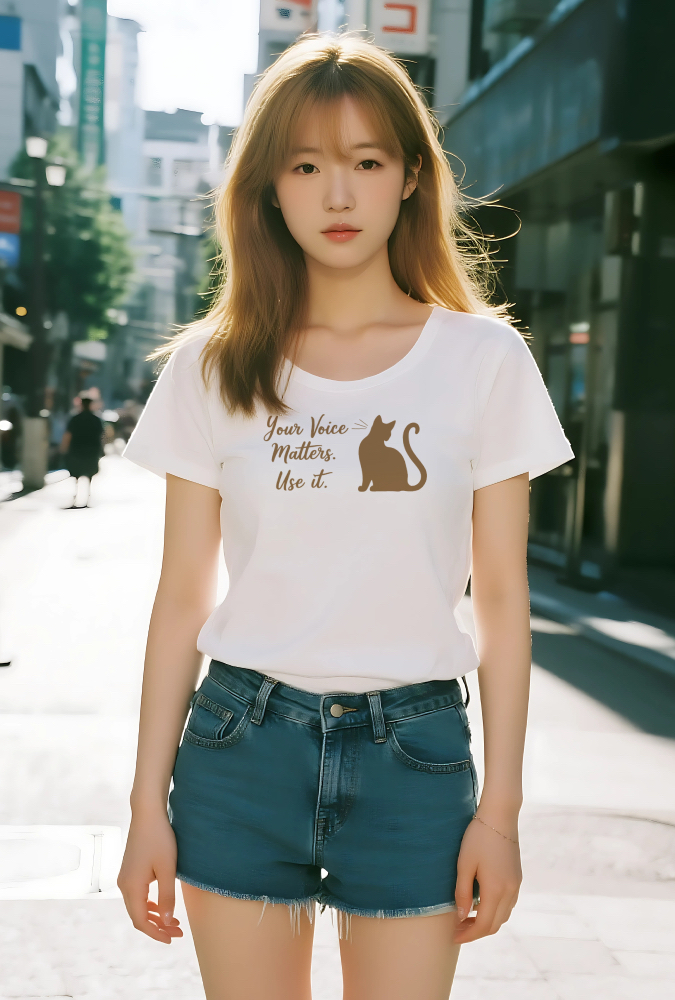 このTシャツは、シンプルながらも力強いメッセージが込められた、あなたの個性を表現するためのアイテム、「Your Voice Matters. Use It.(あなたの声には価値がある。)」という言葉は、私たち一人ひとりが持つ意見や考え、そして発言することの重要性を再認識させてくれます。