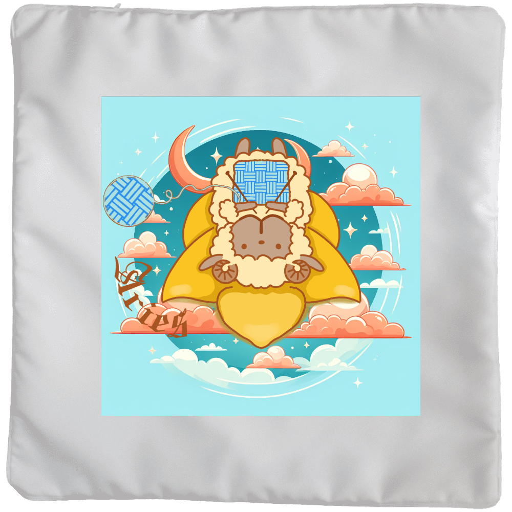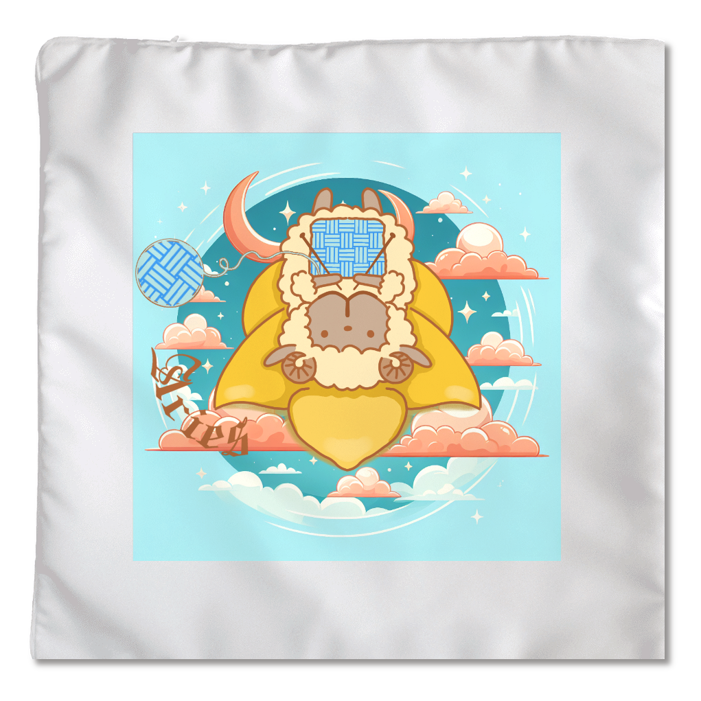 牡羊座に和柄(三崩し)を取り合わせたデザインにしました。羊が編んでる編み物と、毛糸玉の部分が、三崩し柄になってます。ヒツジの口の部分に、牡羊座のマーク♈を、ひっそり入れてます。背景はAIに、空の上のイメージで、作ってもらいました。