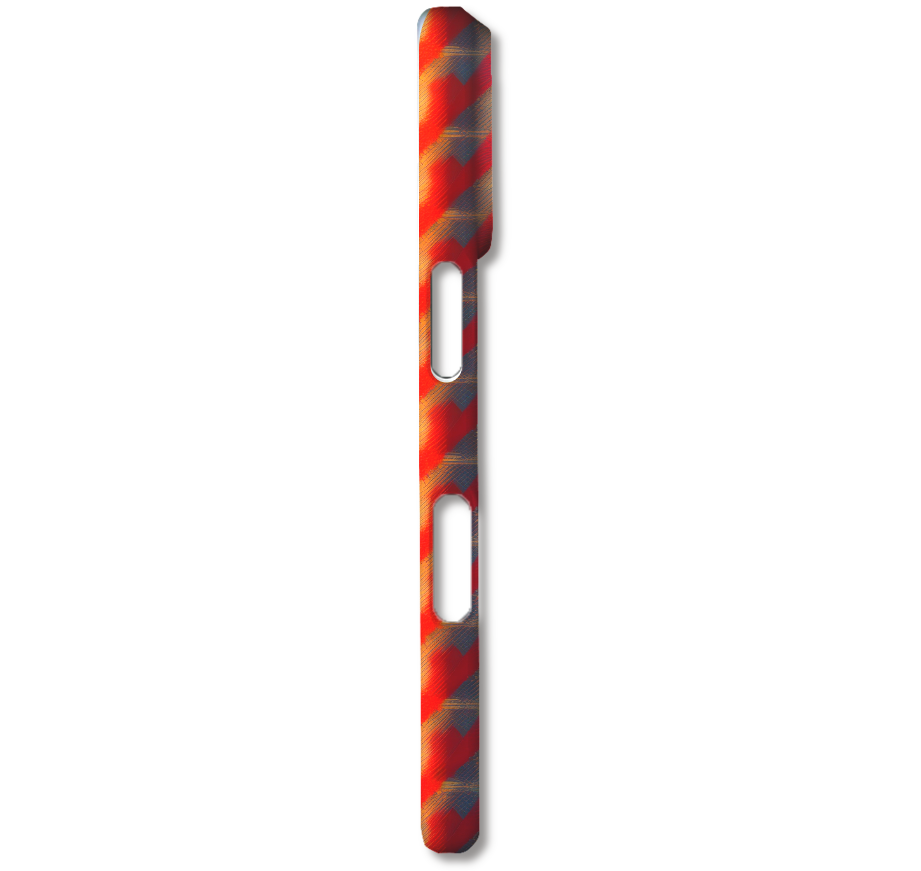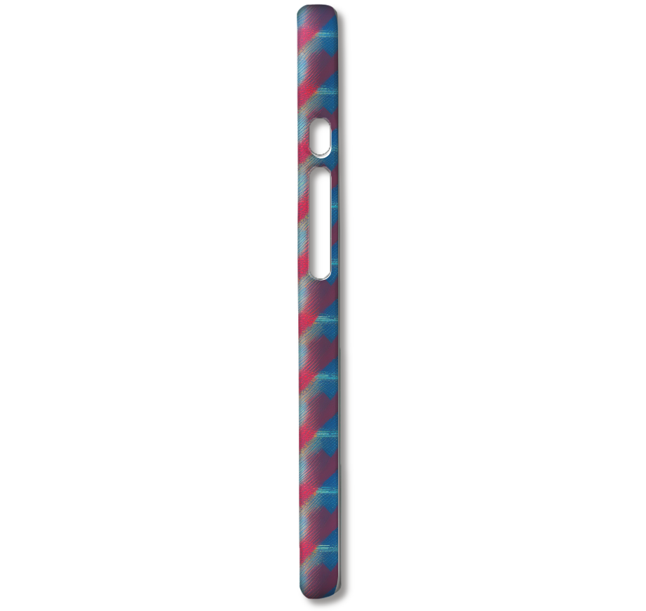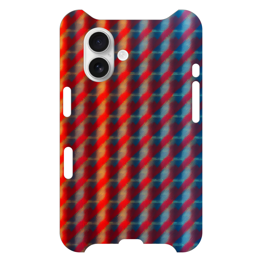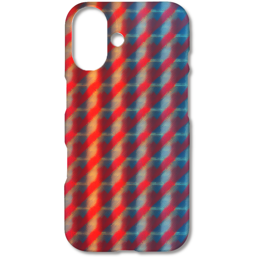 このスマホケースは、光と影が織りなす幻想的なテクスチャを表現した抽象アートデザインです。燃えるようなレッドから落ち着いたブルーへと移り変わるグラデーションが、斜めに走るストライプと相まって、奥行きのある視覚効果を生み出します。まるでキャンバスに描かれた油絵のように、ブラシストロークの質感が感じられる、芸術的な雰囲気が魅力です。