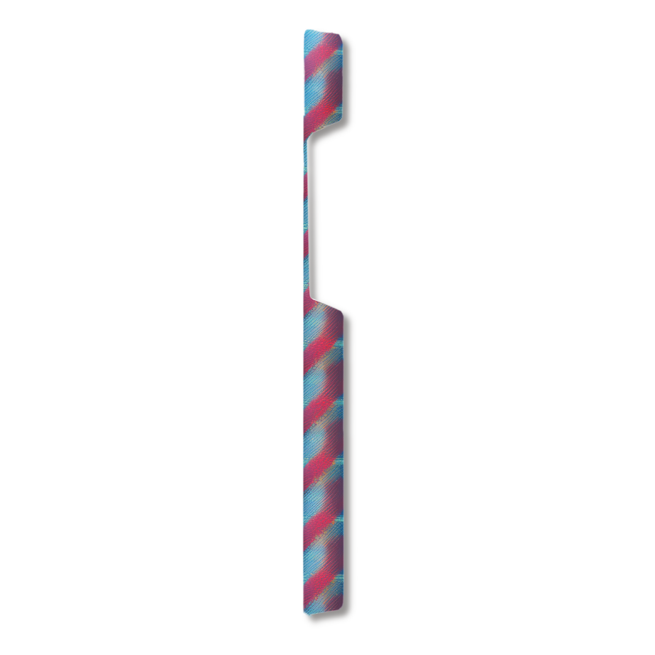 このスマホケースは、光と影が織りなす幻想的なテクスチャを表現した抽象アートデザインです。燃えるようなレッドから落ち着いたブルーへと移り変わるグラデーションが、斜めに走るストライプと相まって、奥行きのある視覚効果を生み出します。まるでキャンバスに描かれた油絵のように、ブラシストロークの質感が感じられる、芸術的な雰囲気が魅力です。
