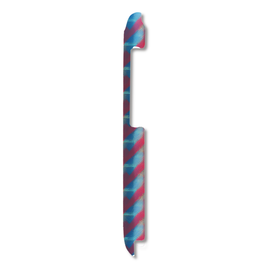 このスマホケースは、光と影が織りなす幻想的なテクスチャを表現した抽象アートデザインです。燃えるようなレッドから落ち着いたブルーへと移り変わるグラデーションが、斜めに走るストライプと相まって、奥行きのある視覚効果を生み出します。まるでキャンバスに描かれた油絵のように、ブラシストロークの質感が感じられる、芸術的な雰囲気が魅力です。