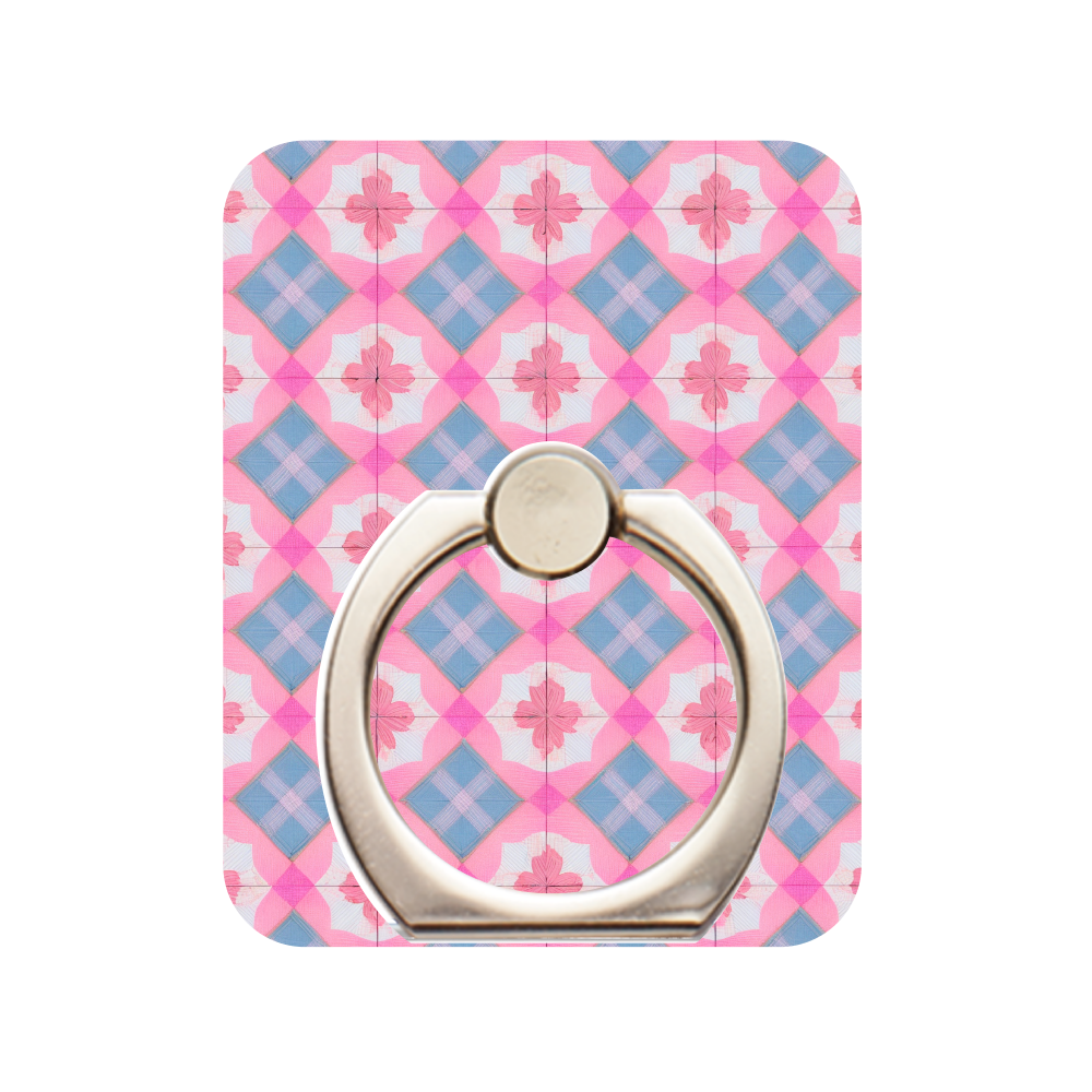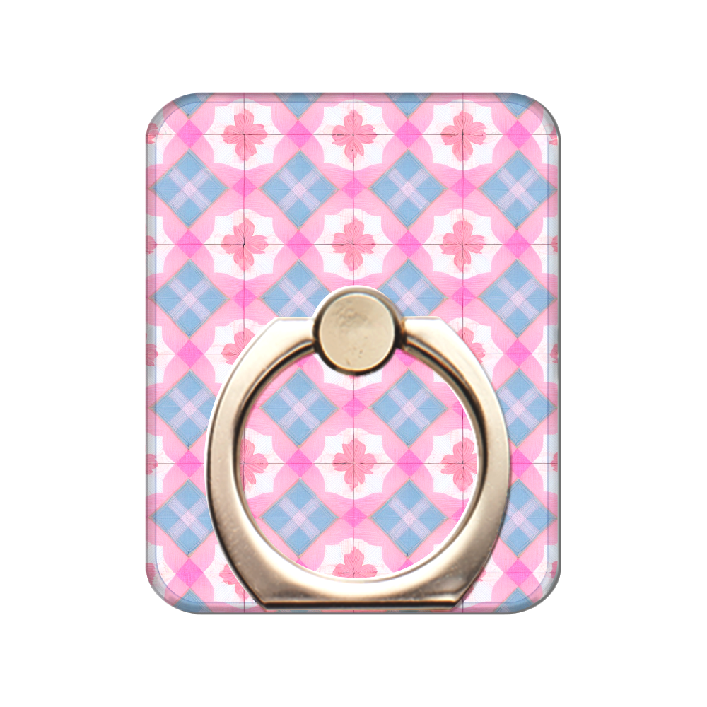 このスマホケースは、エキゾチックなモロッカンタイルを思わせる、幾何学模様と花模様が織りなすデザインです。柔らかなパステルピンクと落ち着いたパステルブルーの組み合わせが、甘すぎず上品な雰囲気を演出します。手描きの線や、ざらりとしたテクスチャ感が、デジタルにはない温かみとクラフト感を加えています