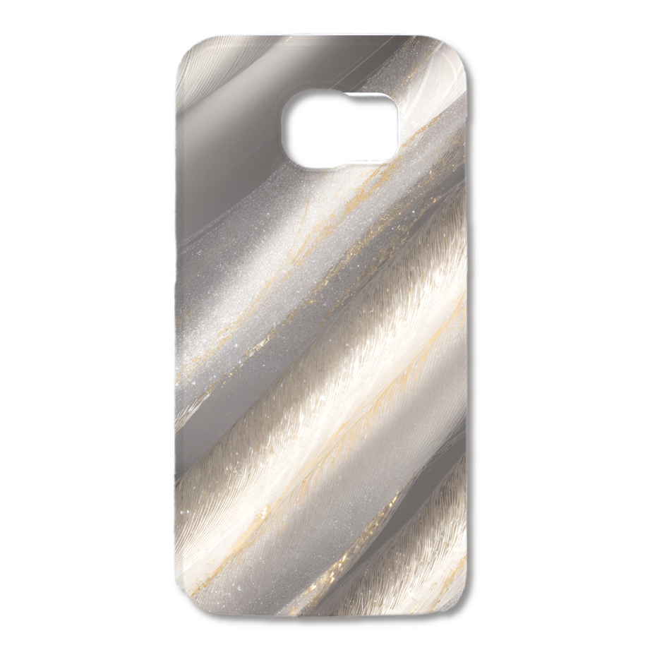 このスマホケースは、光を浴びてきらめく羽毛のテクスチャを抽象的に表現したデザインです。柔らかく繊細な羽毛の質感が、シルバーとゴールドのきらめきによって幻想的な輝きを放ちます。まるで魔法の世界から飛び出してきたような、上品でゴージャスな雰囲気が魅力です。