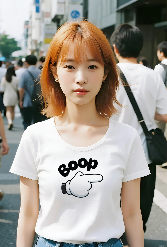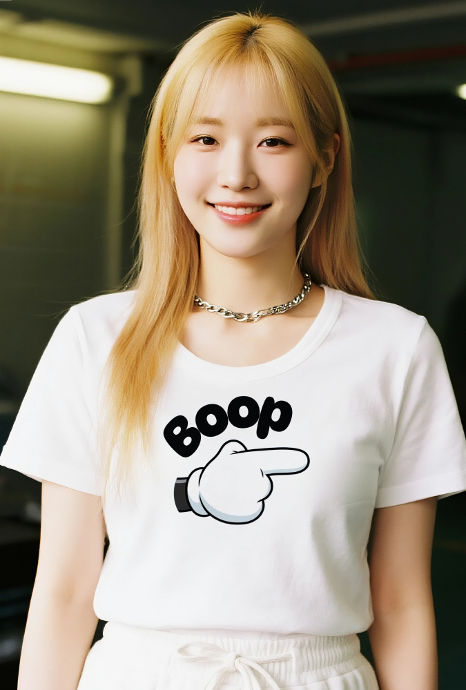 この「Boop」Tシャツで、あなたの個性と遊び心を存分に表現し、毎日をさらに楽しく、笑顔あふれるものにしてください!