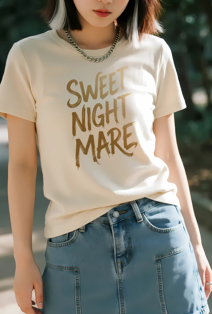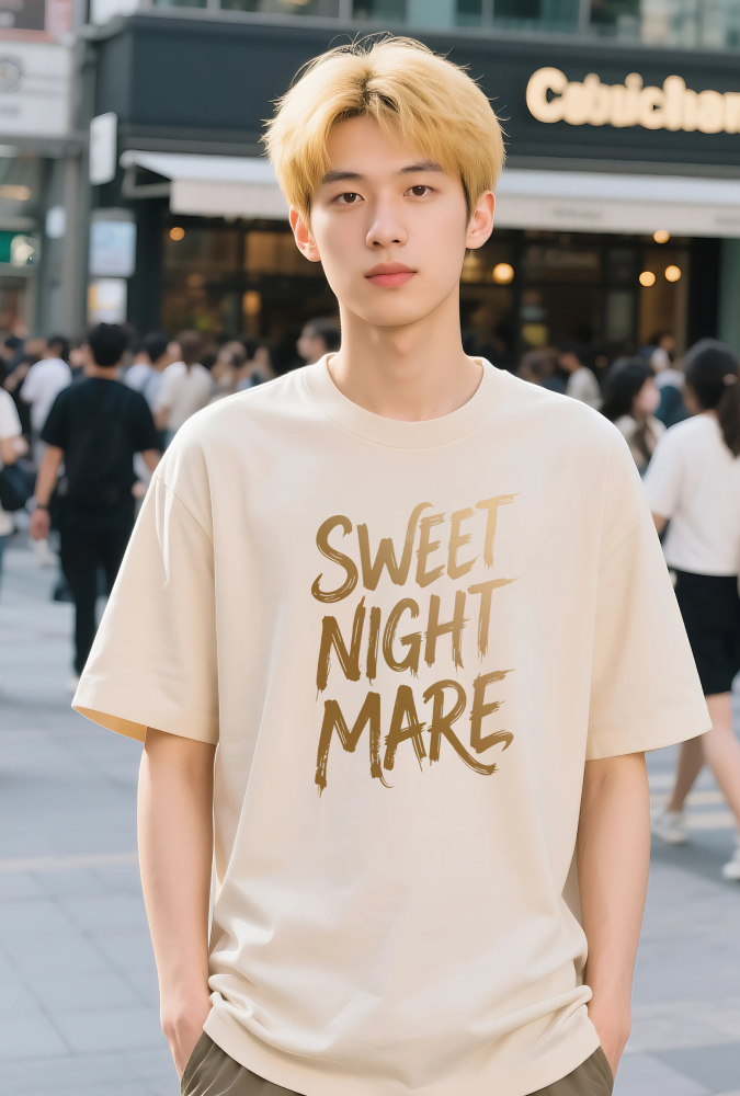 【SWEET NIGHTMARE】ダーク×クールな筆文字デザインTシャツ|個性派ストリートファッションにおすすめ