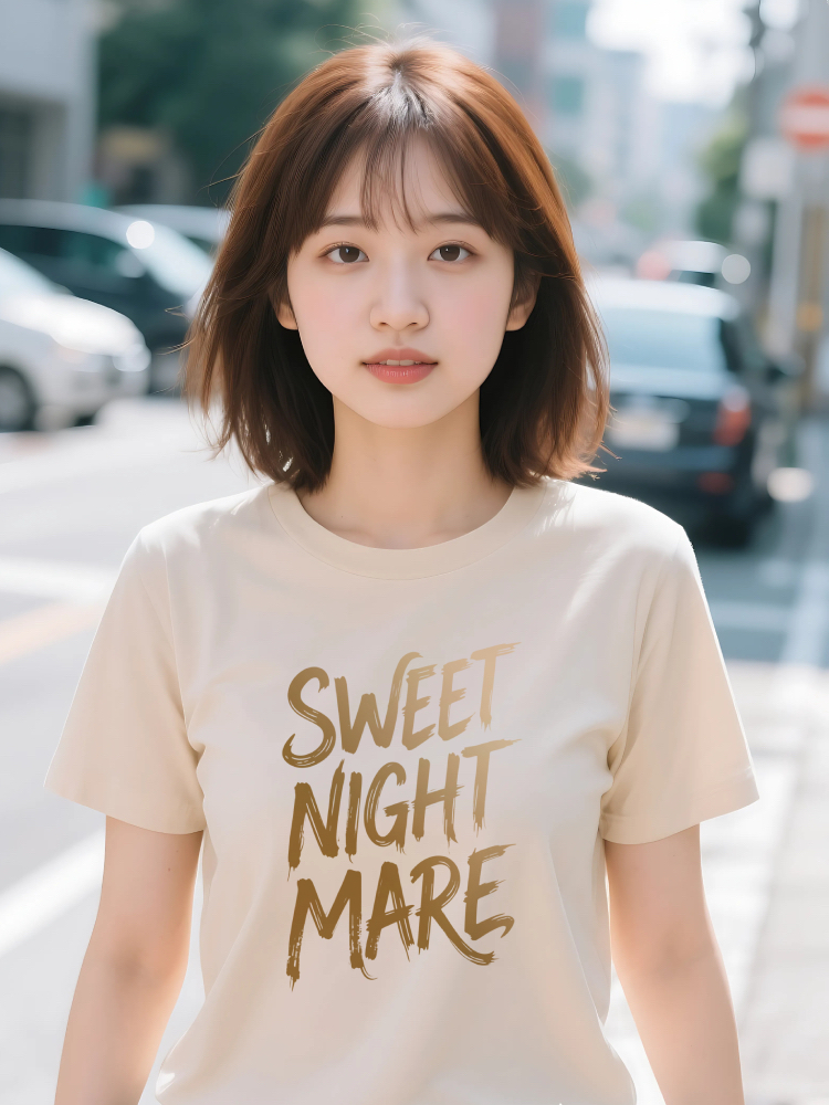 甘美さと悪夢のような刺激を融合させた「SWEET NIGHTMARE」デザインTシャツが登場。大胆な筆文字タッチがインパクト抜群で、シンプルながら存在感のある一枚です。ストリートコーデやロックスタイルにぴったりで、ユニセックスで着こなせるのも魅力。普段使いはもちろん、ライブやイベントなどで目を引くこと間違いなし。遊び心とクールさを兼ね備えたデザインで、あなたの個性を表現してください。