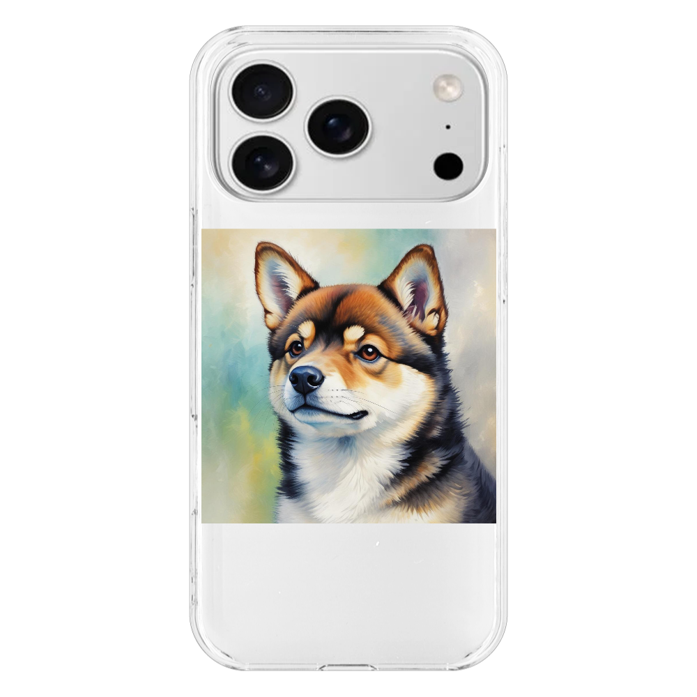 黒柴ちゃん 斜め上視線・水彩画タッチ iPhone17 ProMax (透明・ハードケース)
