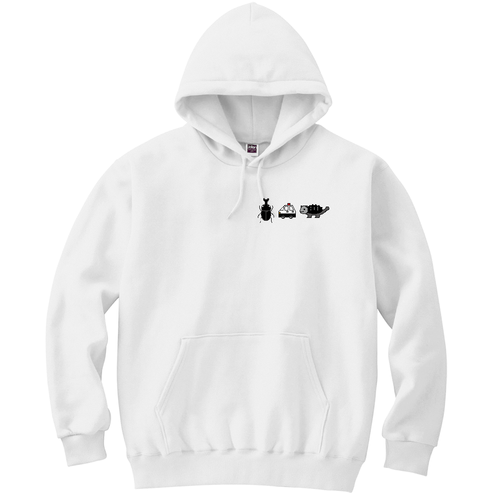 【黒いもの】軽量プルパーカー|カブトムシ・パトカー・アンキロサウルス