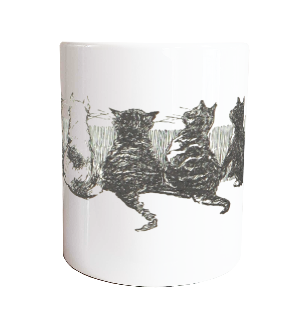 5匹の子猫の後ろ姿が愛らしいマグカップです。