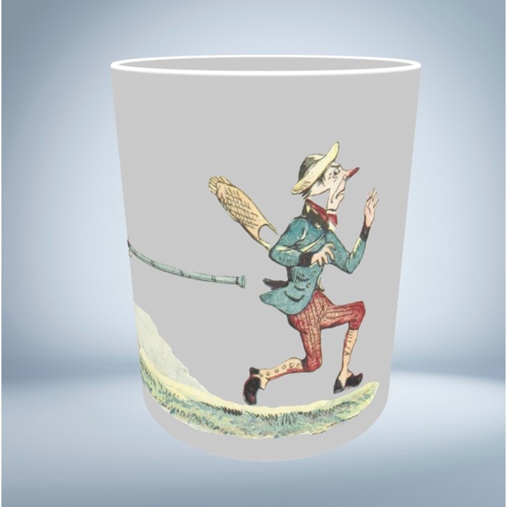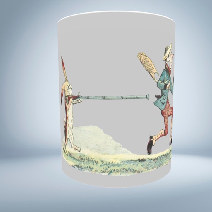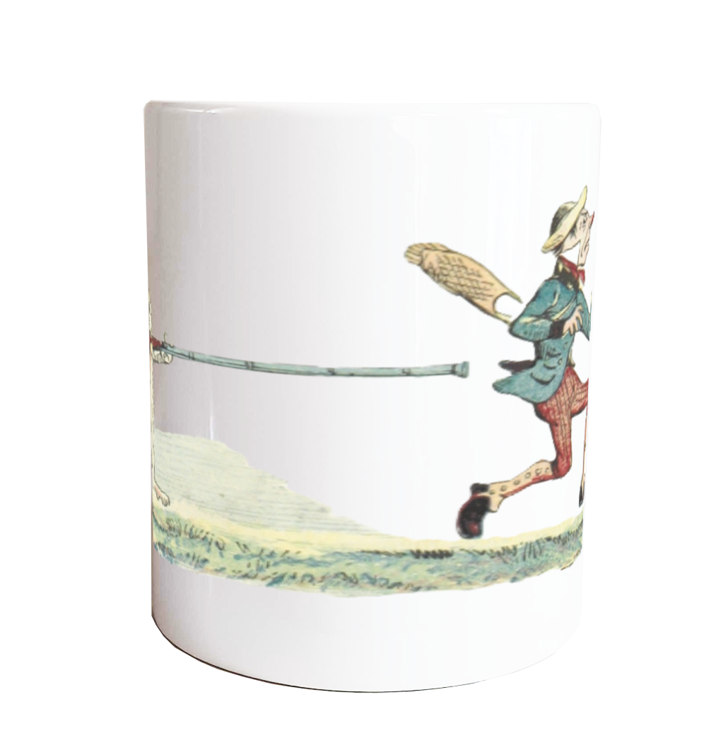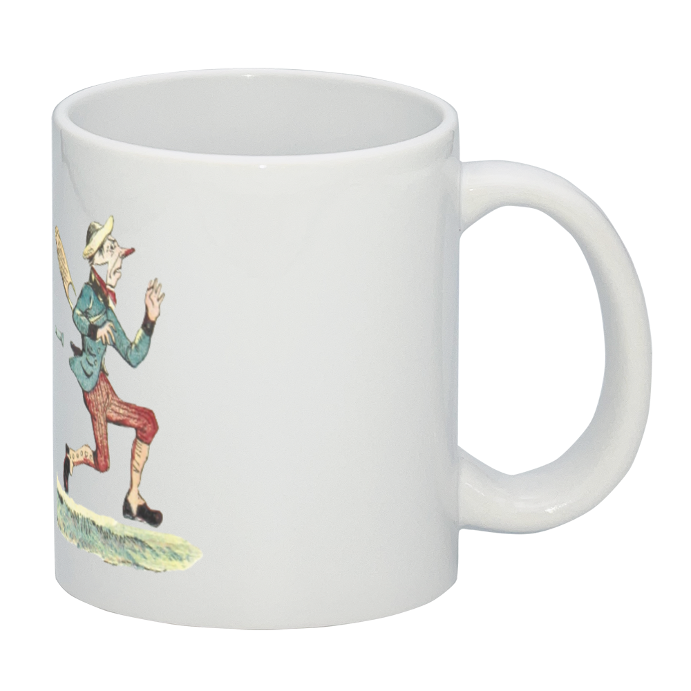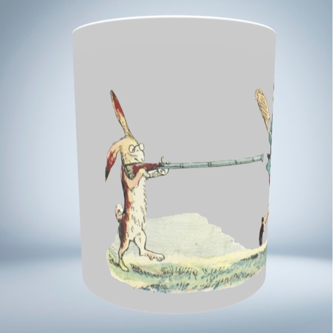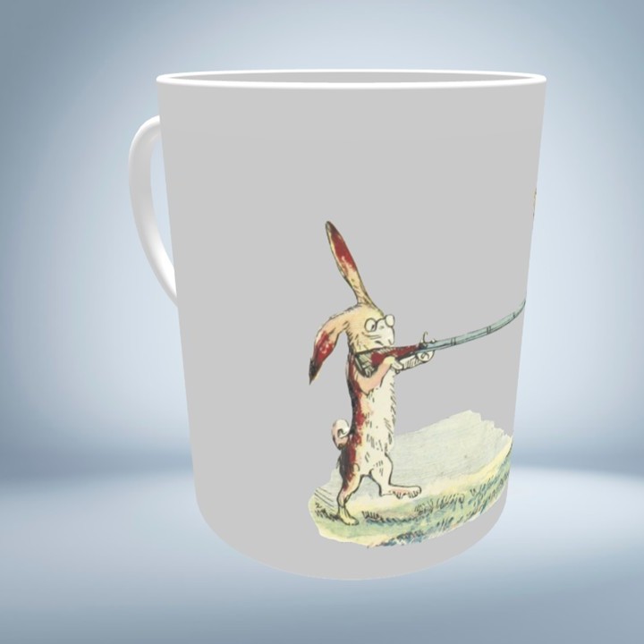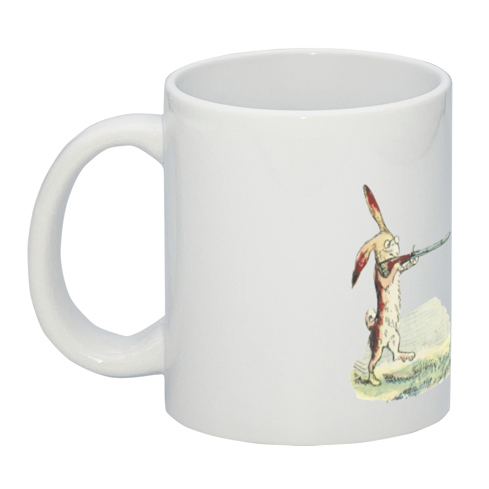 ウサギに狙われるおじさんのコミカルなイラストが特徴のマグカップです。