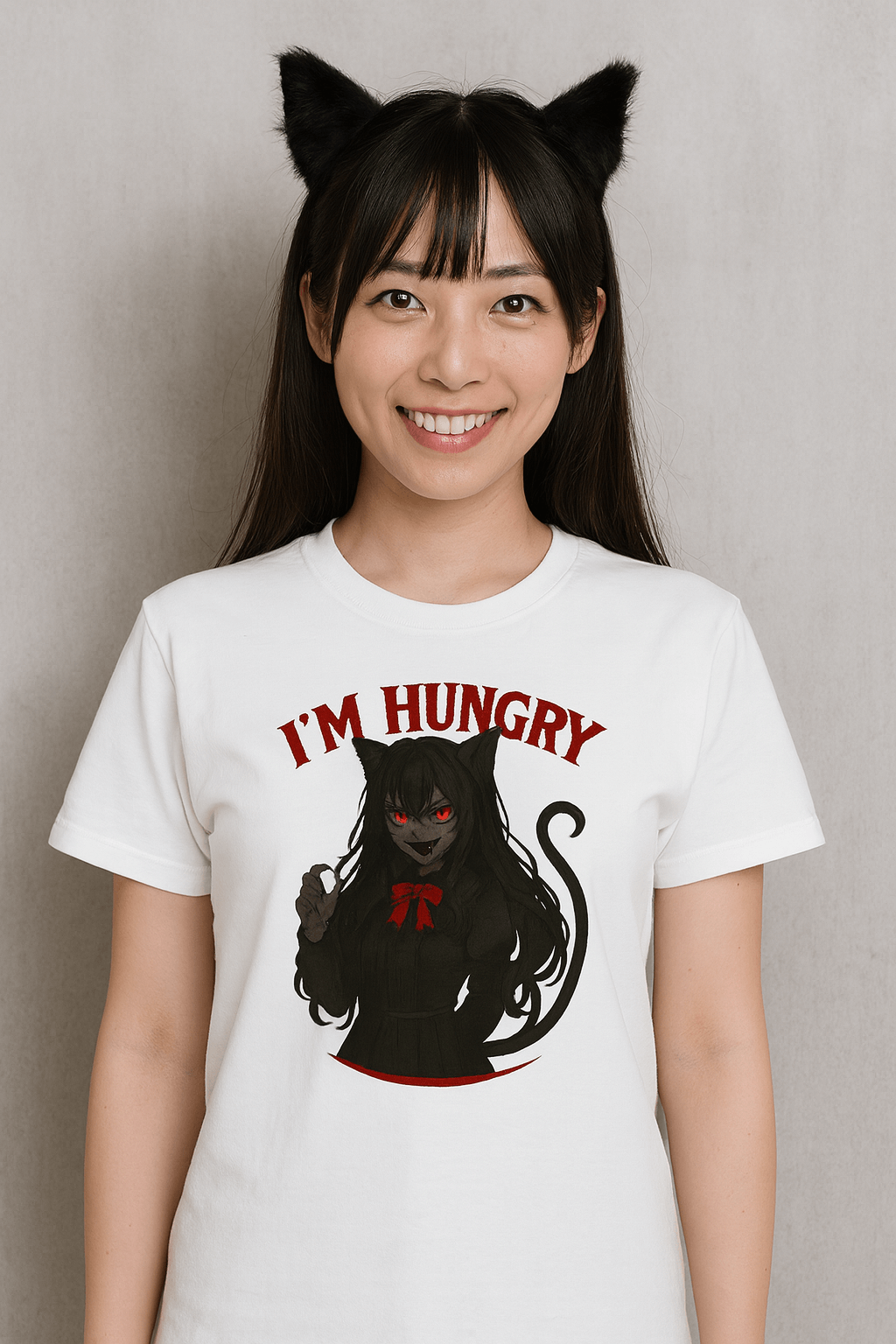 he usually shows the lovable gestures of a cat, but once she whispers “I’m hungry,” her voice turns into a curse-like echo.