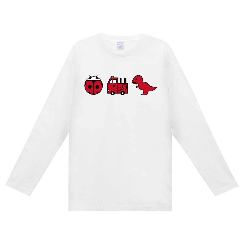 【赤いもの】定番長袖Tシャツ(大デザイン)|110cm〜3XL|テントウムシ・消防車・ティラノサウルス