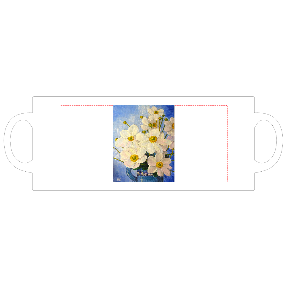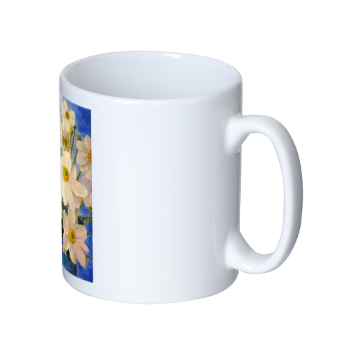転写紙にインクをプリントし高温の熱をかけることで、インクを気化させマグカップに浸透させる加工方法です。マグカップに直接浸透させることで、表面には印刷した違和感(凸凹)が全く残りません。