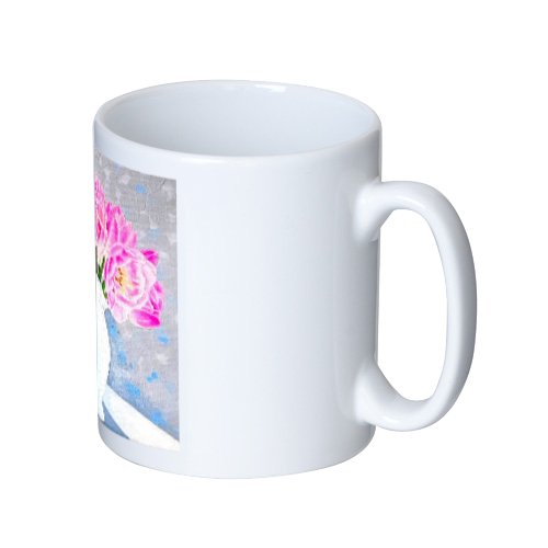 転写紙にインクをプリントし高温の熱をかけることで、インクを気化させマグカップに浸透させる加工方法です。マグカップに直接浸透させることで、表面には印刷した違和感(凸凹)が全く残りません。