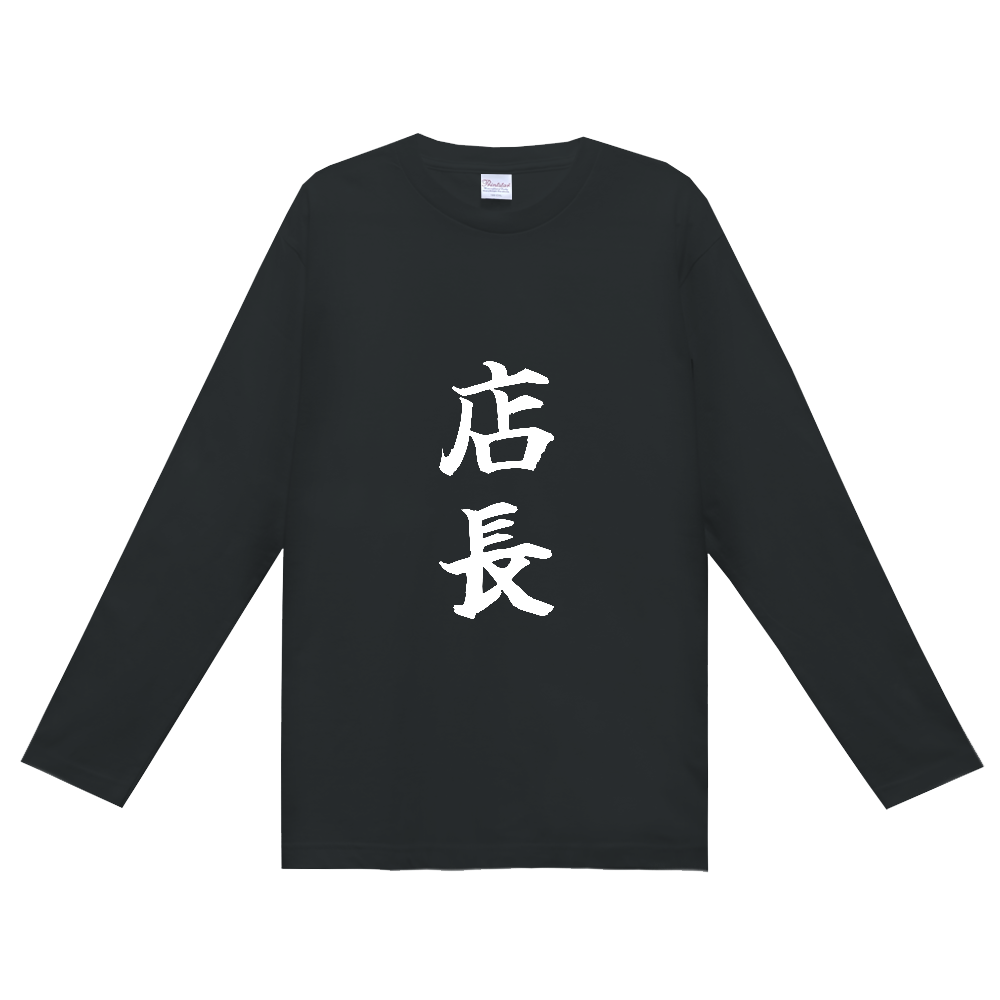 前面に大きく「店長」の文字が縦書きで書かれた長袖Tシャツです。