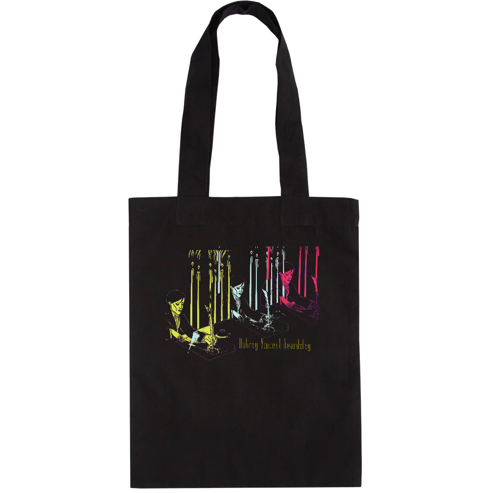 妖しくも美しい線描でアール・ヌーヴォーの時代を象徴した天才イラストレーター、オーブリー・ビアズリー。彼の静謐な執筆姿を、幻想的な色彩とリズムで再構成したアートTシャツ&トートバッグです。