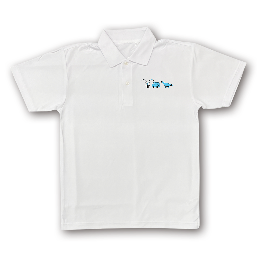 【青いもの】プリンタブルドライポロシャツ キッズ|ルリボシカミキリ・ゴミ収集車・アルゼンチノサウルス