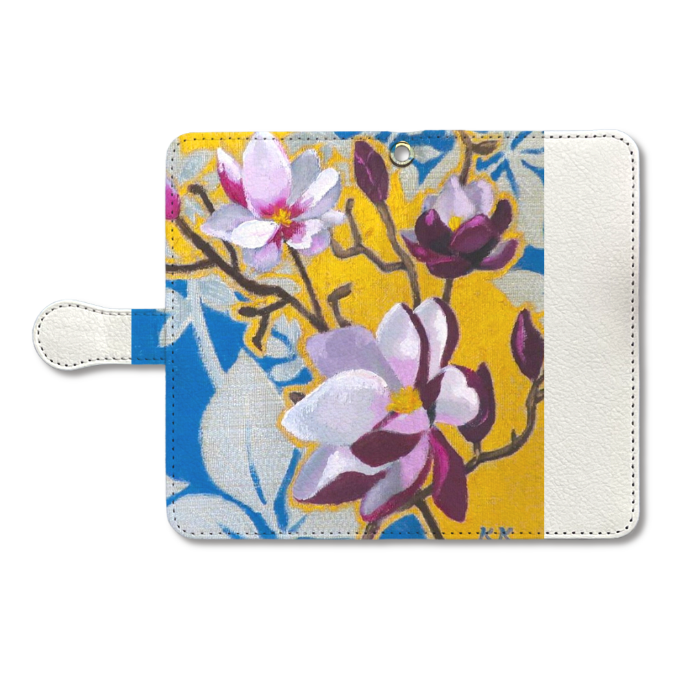 手帳部分:ポリウレタン樹脂(合成皮革)/ホワイト スマホ本体ケース:ポリカーボネート樹脂(プラスチック)/ホワイト 留め具部分:磁石(カバーに内蔵)