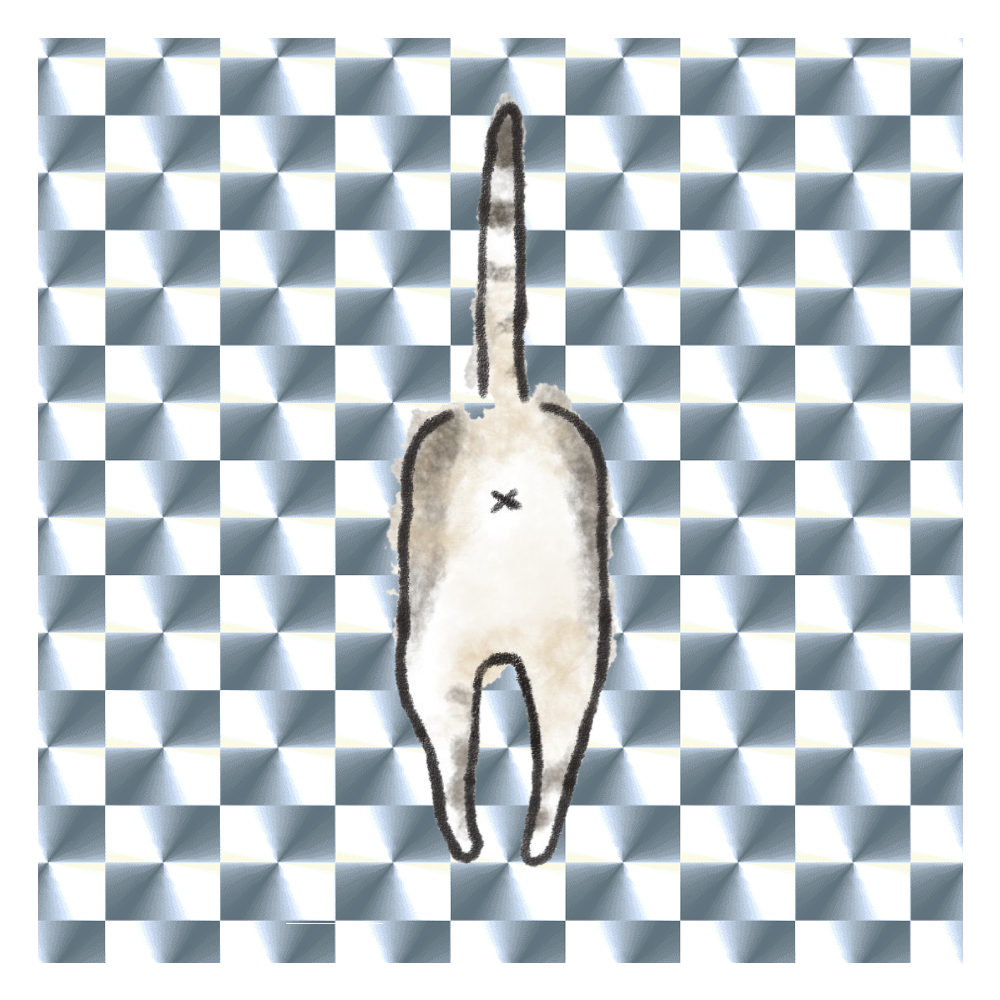 メタリックな銀色をベースとした約6㎜角のスクエア柄が、光の反射によって虹色のように輝いて見える見た目が華やかな印象のシールです。