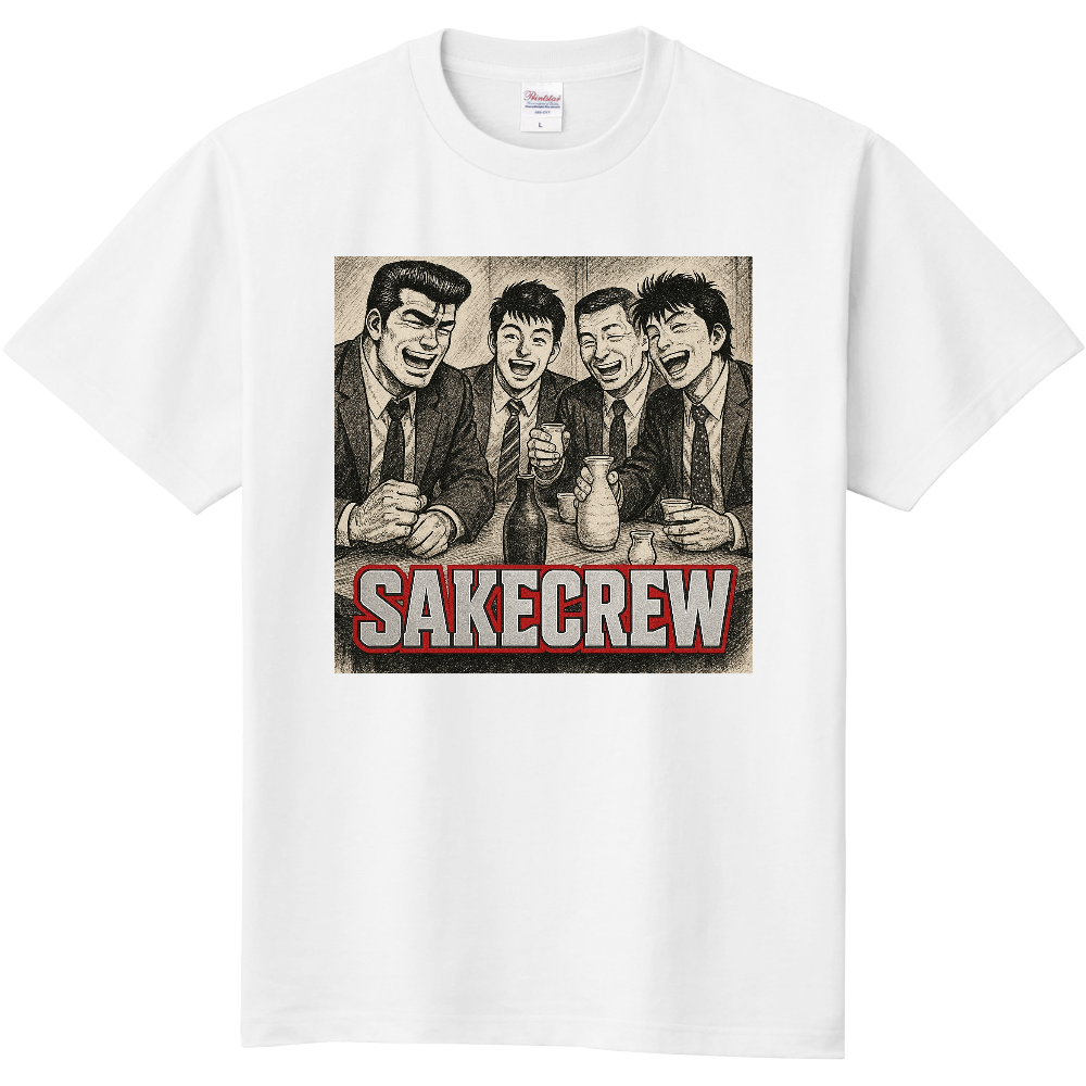 下部にはブランドアイコン「SAKECREW」をシルバー×赤縁取りで堂々と配置。力強さと洒落感が共存した、唯一無二のグラフィックTシャツです。