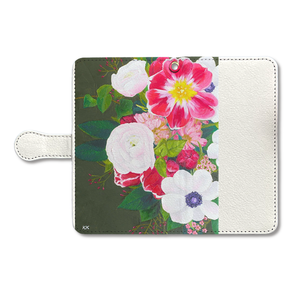 手帳部分:ポリウレタン樹脂(合成皮革)/ホワイト スマホ本体ケース:ポリカーボネート樹脂(プラスチック)/ホワイト 留め具部分:磁石(カバーに内蔵)